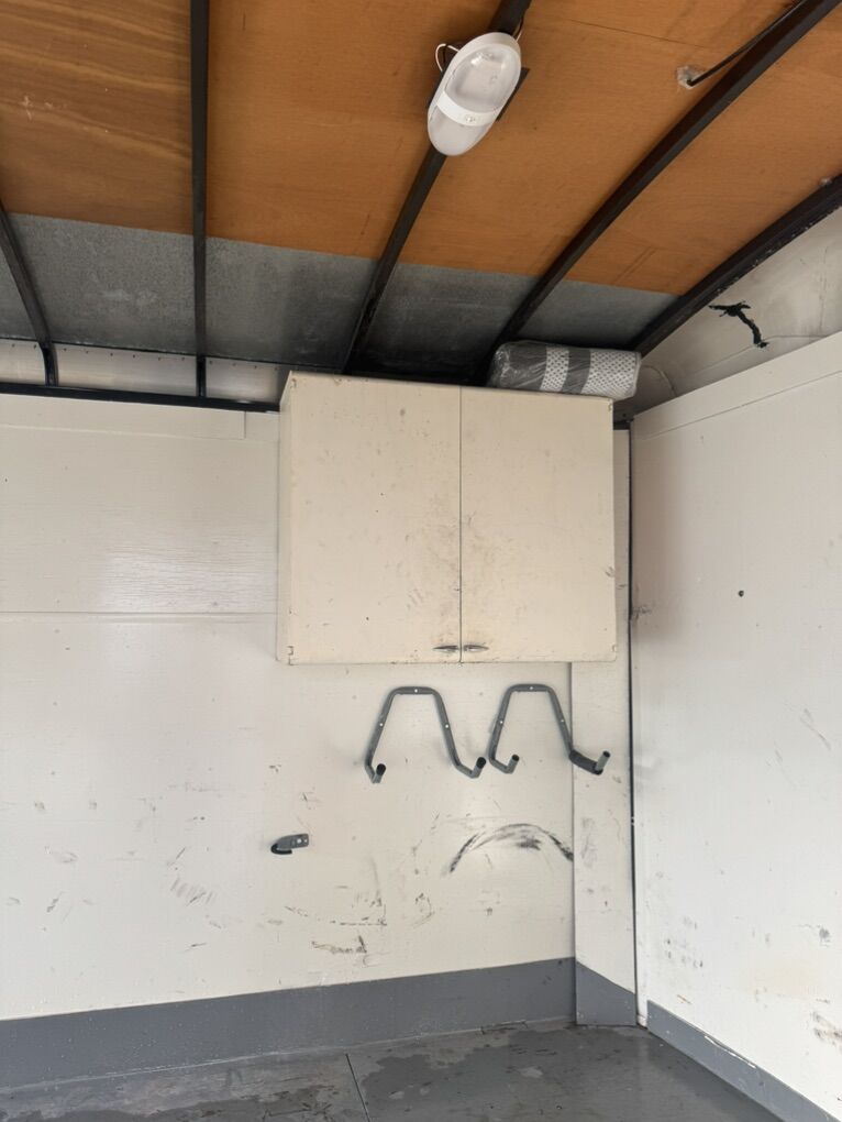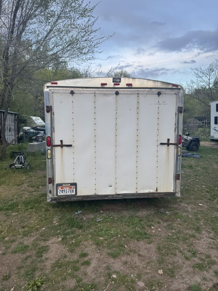 Specs at 2 3500lb axles box is 20ft long by 8.5ft wide by 8.6ft tall door way is 6.3 ft tall by 7.6 wide has new floor from previous owner I installed new lights track on the floor diesel heater and a solar panel on the roof to keep the battery charged to run the diesel heater storage and flag holder for four wheelers I also installed the window in the man door axles been greased every 6 months and checked for play