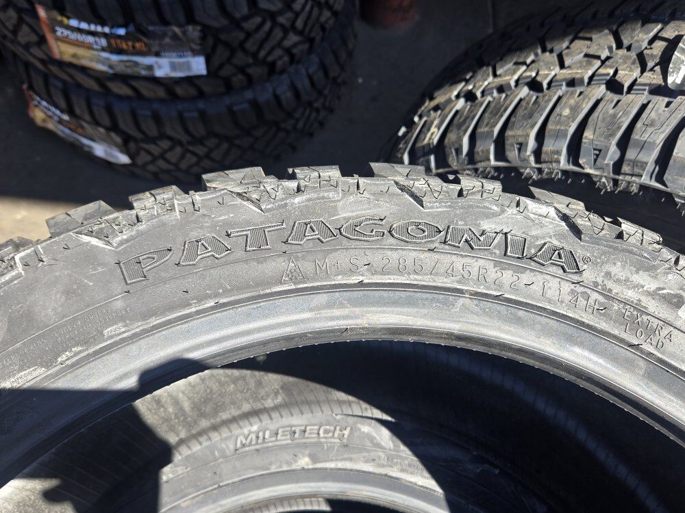 Brand new set of tires are MILESTAR PATAGONIA Size is 285/45R22. Free mount, balance, and brand new valve stems. $1050+ tax Price for all 4 Also check out our GOOGLE reviews to assure you’re in good hands, just search (Oliver Tires) We also offer lots of other sizes new and used. Call or text for availability Espańol; 8016885139 Office: 8016620227 Or come visit us at 3010 west 500 south Salt Lake City Utah