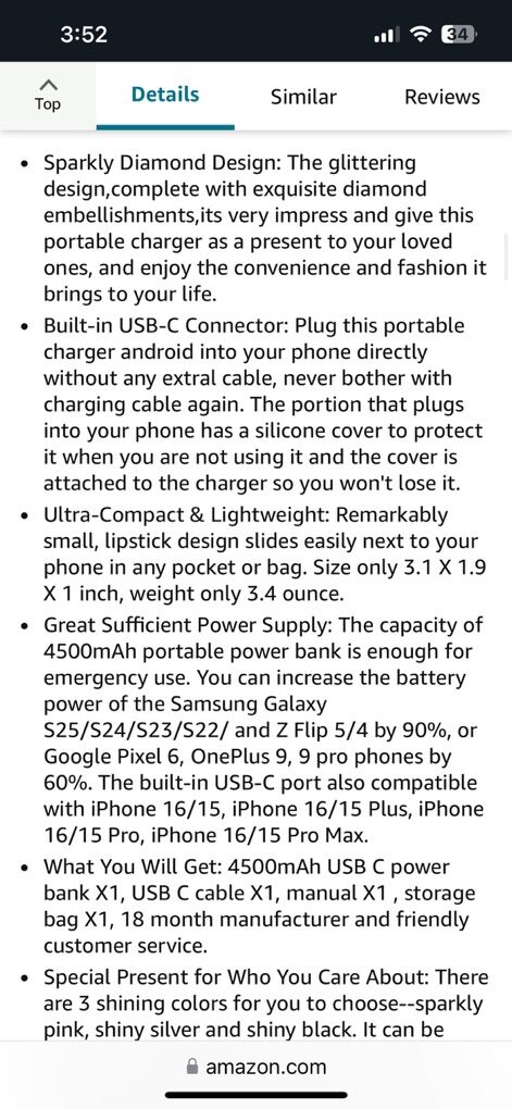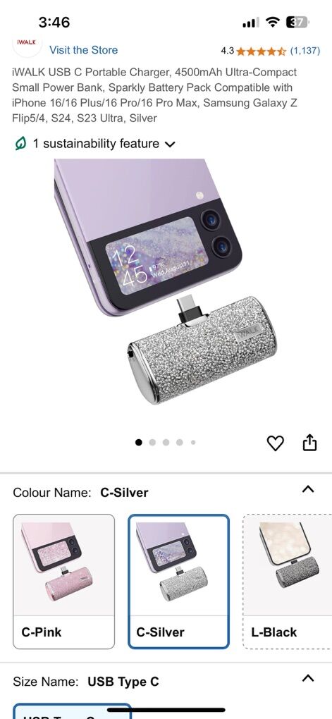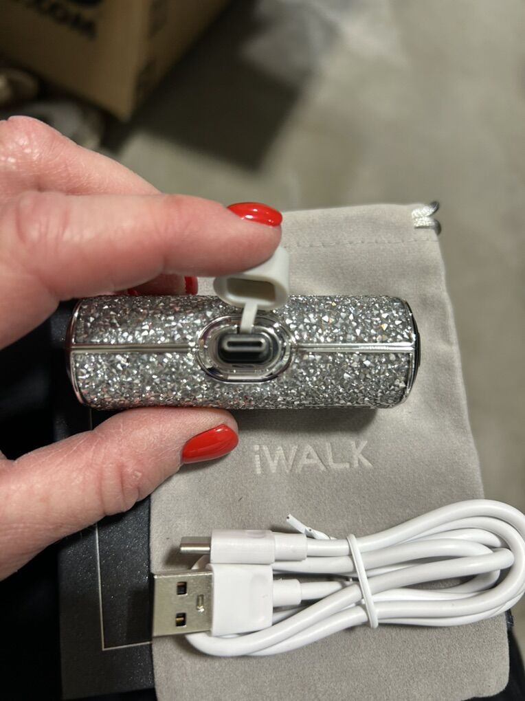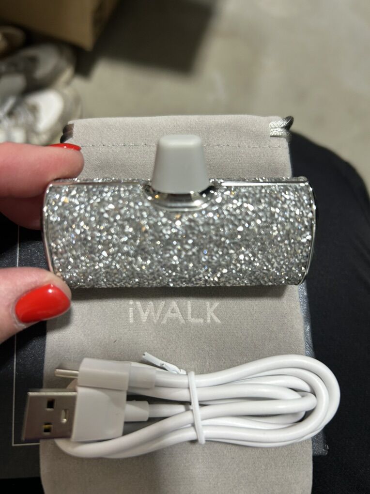 VenmoNew in the box iWalk silver glitter sparkle USB-C portable charger. Make a statement and never be without juice for your phone. Comes with charging cord and travel bag. 4500mah. Clean smoke free home. Cash or Venmo. Porch pick up from Alpine.