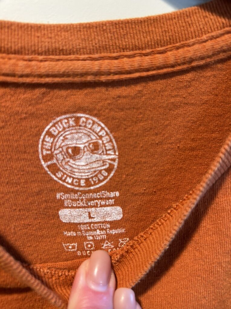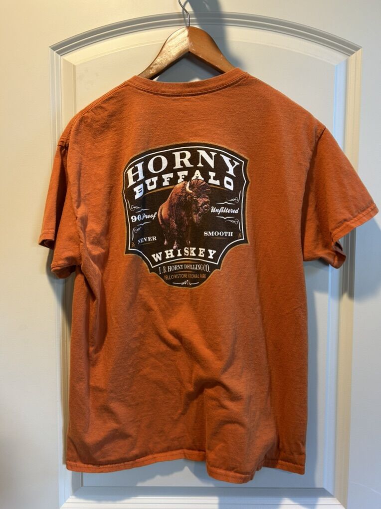 VenmoAn excellent condition men’s size large horny, buffalo T-shirt in orange. From The Duck company brand T-shirts. No stains holes flaws or defects. Comes from a clean smoke free home. Cash or Venmo. Porch pick up from Alpine.