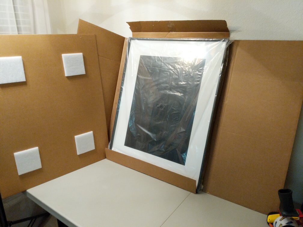 Venmoblack picture frame w/white mat. 18"x24"- 32"H 26"W 2"D aluminum frame w/matte black finish and museum quality glass hang vertical/horizontal w/sawtooth hangers.