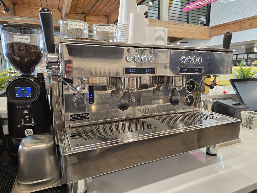 ZelleThis is a lightly used Rocket R9 2 Group Espresso Machine. It was purchased new 1 year and 6 months ago, it has been maintained consistently by the local Rocket tech. it's currently in use at Egg Break in Salt Lake City so feel free to stop by and we'll pull you a shot.