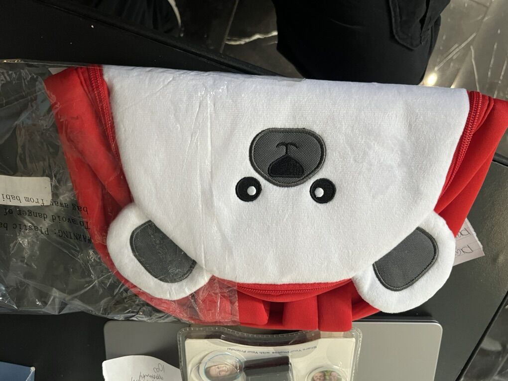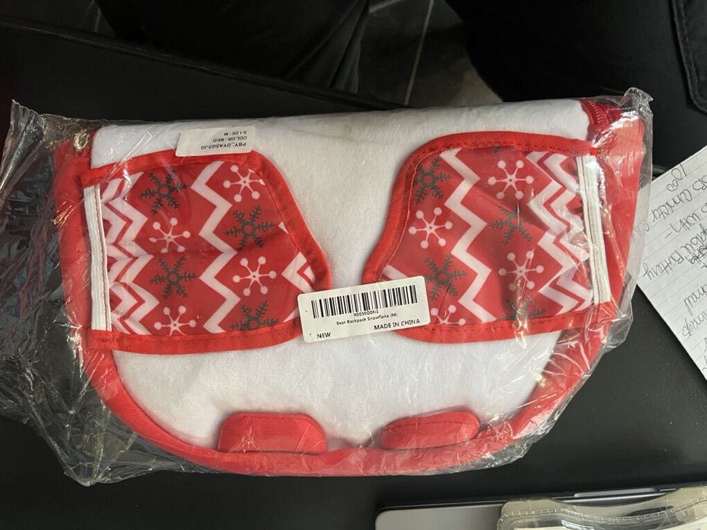 VenmoBrand new kids preschool backpack. White/res polar bear back pack with pockets in the best mittens. Can put hands for warmth in there. 12 inches wide by 14 inches length appox.