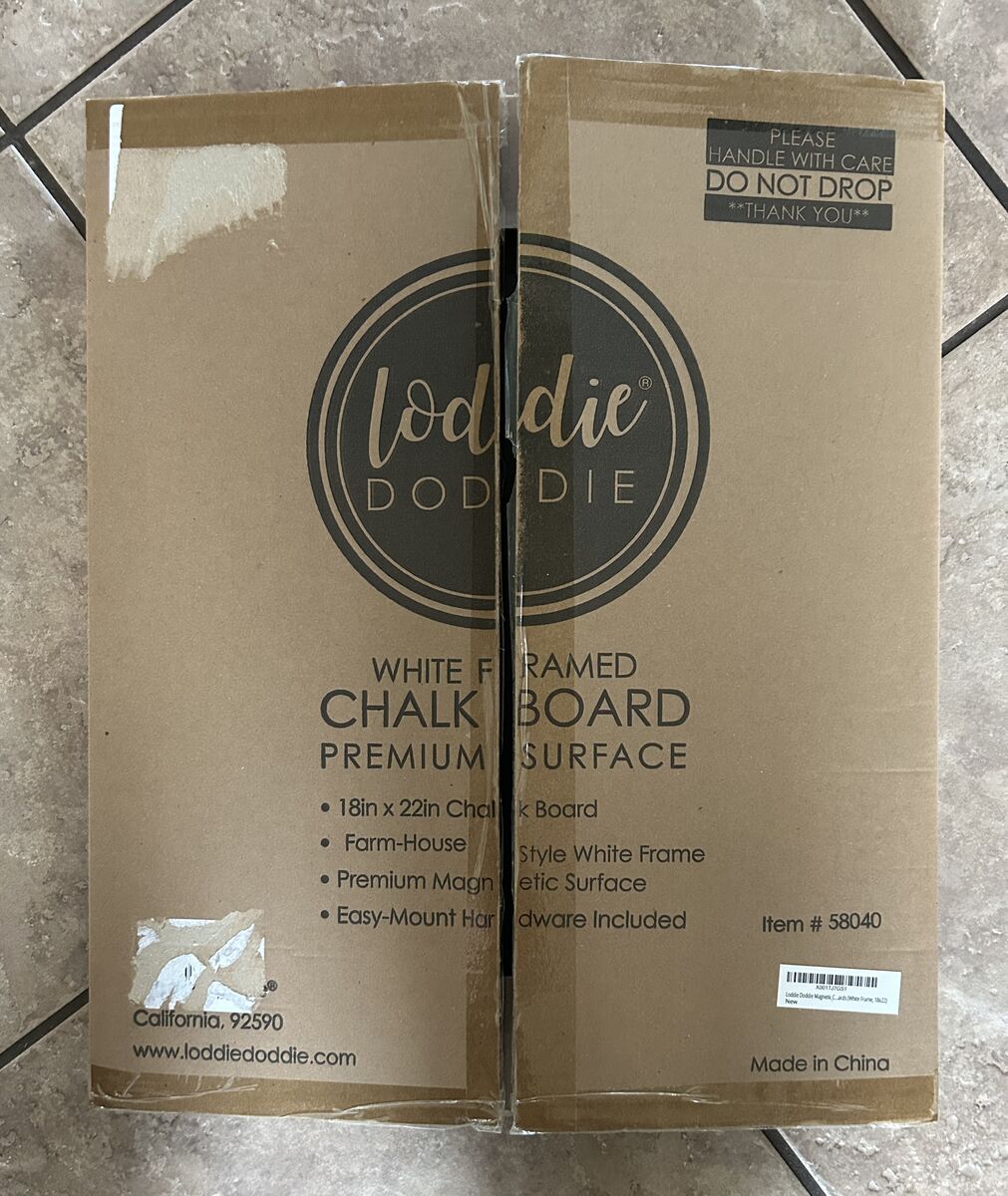 I have a Loddie Doddie Magnetic Chalkboard - 18 x 22 Inch - Farm House Style with White Frame for $35 cash. This was used one time for a wedding dinner and is still in excellent condition. This has been in a smoke/pet free home. Contact me to see.