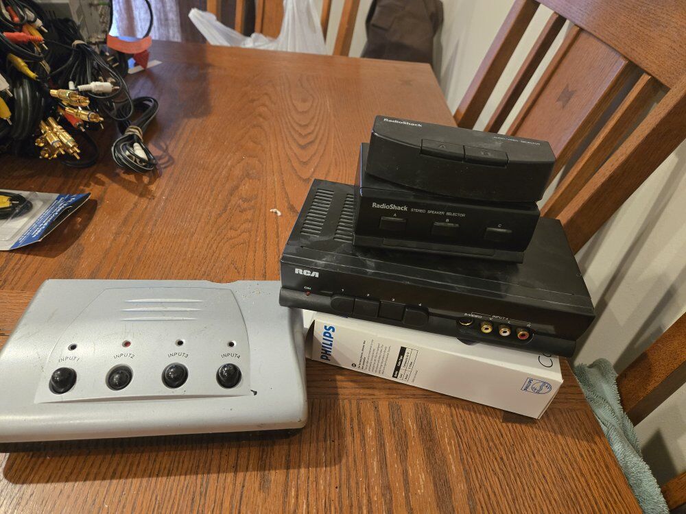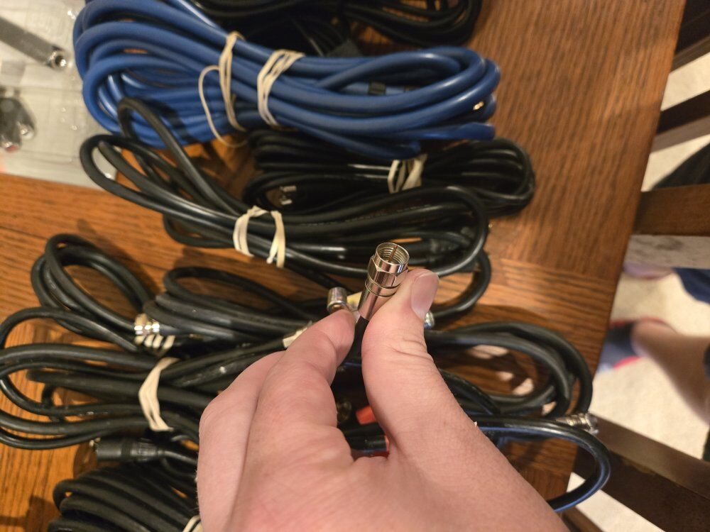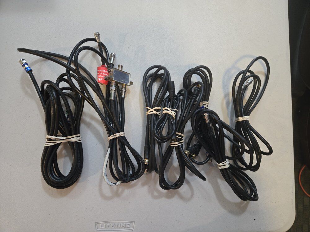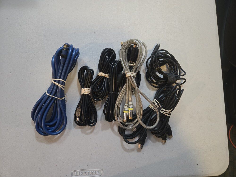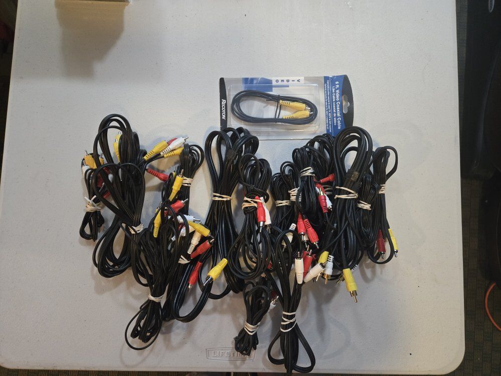 We have different RCA cables, Coax type F, Mics, S video cables, a ton of adapters, and many more! If you're currious if we have it, just shoot me a message and I'll take a look.