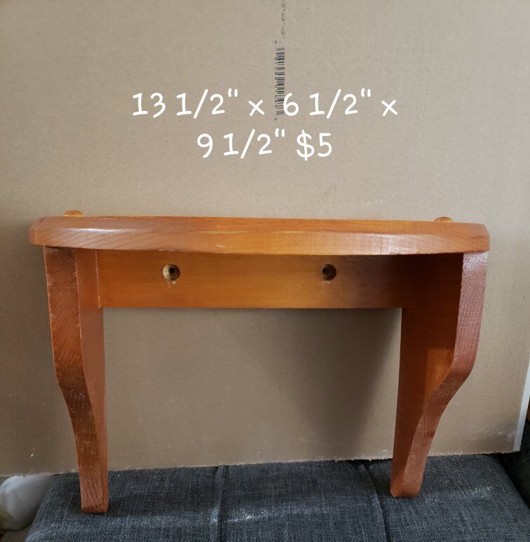 $5 each. These are handmade shelves. They show a little wear and tear, but re-staining or painting would fix. 1 is unfinished, the other 2 are stained.