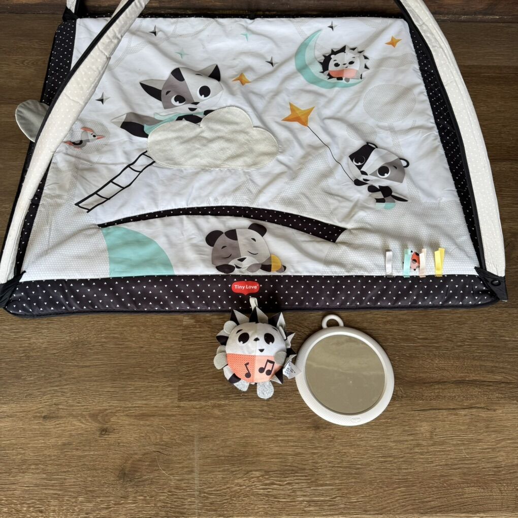 Tiny Love Magical Tales Black & White Play Activity Gym It does have scratches on the mirror and the batteries in the toy need to be replaced
