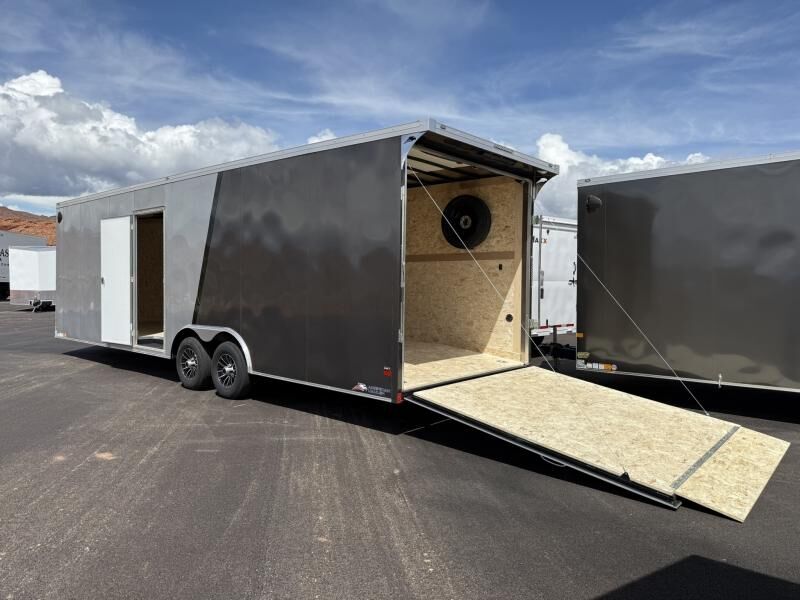 Stock #: AH0016 Trailer Specs: Color: Silver/Charcoal .030 Bonded Aluminum Door/Ramp: Rear Spring Assist Ramp Door Weight: 4,680 lbs. | GVWR: 9,990 lbs. | Payload: 5,220 lbs. Axle(s): 2-5,200 lb. Dexter Spring Electric Axle w/ EZ Lube Hubs Tire/Wheel: ST225/75R15 | Load Range D Coupler: Type: Bumper Pull | Size 2-5-16" | 7-Way 12V Connector 16" OC Vertical Posts | 16" OC Crossmembers | 16" OC Tube Roof Bows 3 Year Limited Warranty Trailer Includes Following Options: 7'6" Interior Height Aluminum Wheel Upgrade Rear Spoiler w/ Load Lights Standard Features: 2"x6" Tube Main Frame 1-Piece Aluminum Roof 24" Starbright Stoneguard 3/8" PlexCore Sidewall Liner 3/4" PlexCore Flooring 36" Side Entry Door w/ Flush Lock and Recessed Step (4) 5,000# Recessed D-Rings 16" Ramp Extension Flow-Thru Sidewall Vents 12v Interior LED Dome Light 12v Exterior LED Lighting Smooth Aluminum Radius Fenders Undercoated Chassis Common Addons: Wall Mounted Spare Tire - $180 10 ft. E-Track Stick Recessed 2,500# D-Ring Additional Colors Available Call for Availability WASATCH TRAILER SALES - LARGEST TRAILER SELECTION IN UTAH Hurricane: (435) 239-8920 | 6477 W Foothills Canyon Dr. Hurricane, UT 84737 View More Inventory: www.wasatchtrailer.com Over 2,000 trailers in stock at Wasatch Trailer Sales! With three convenient Utah locations - Layton, Springville, and Hurricane - finding the perfect trailer has never been easier. We offer one of the largest inventories around, backed by quality you can trust, superior value, and unparalleled pricing. Don't see exactly what you need? Call or text 435-239-8920 with 20+ top manufacturers and easy financing, we'll get you on the road fast! Whatever you haul, we've got the right trailer - in stock year-round!