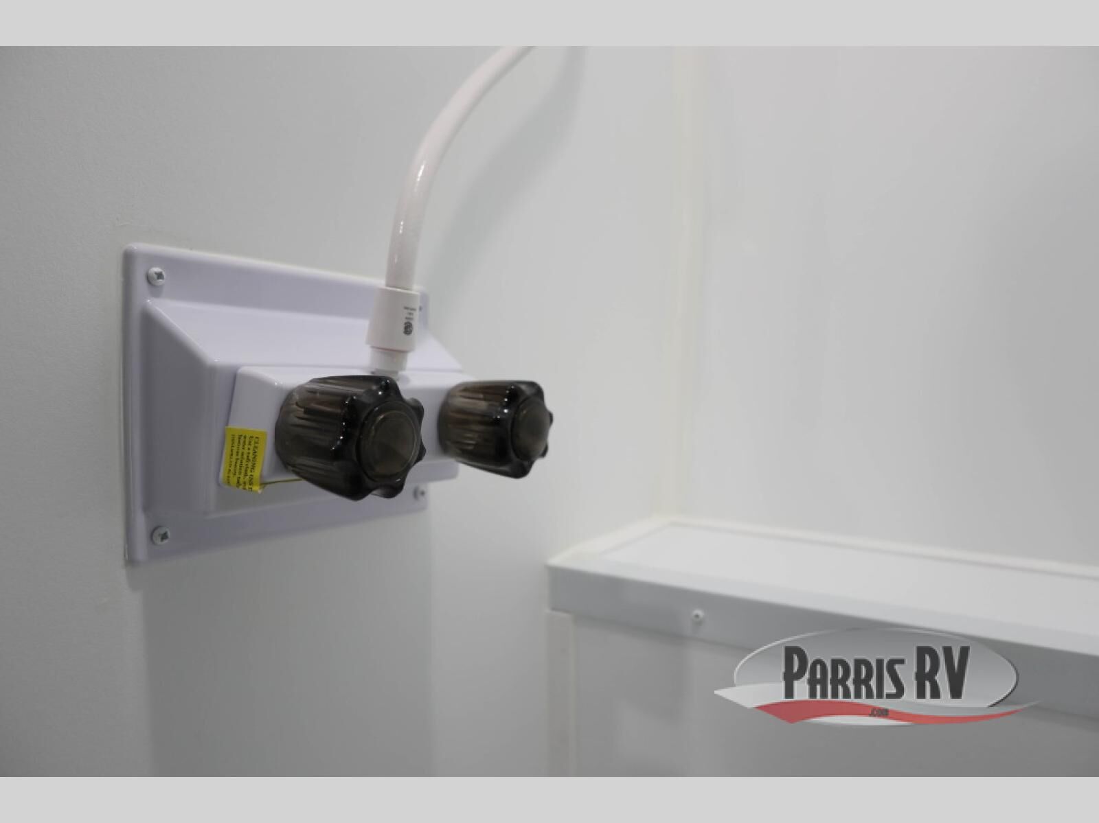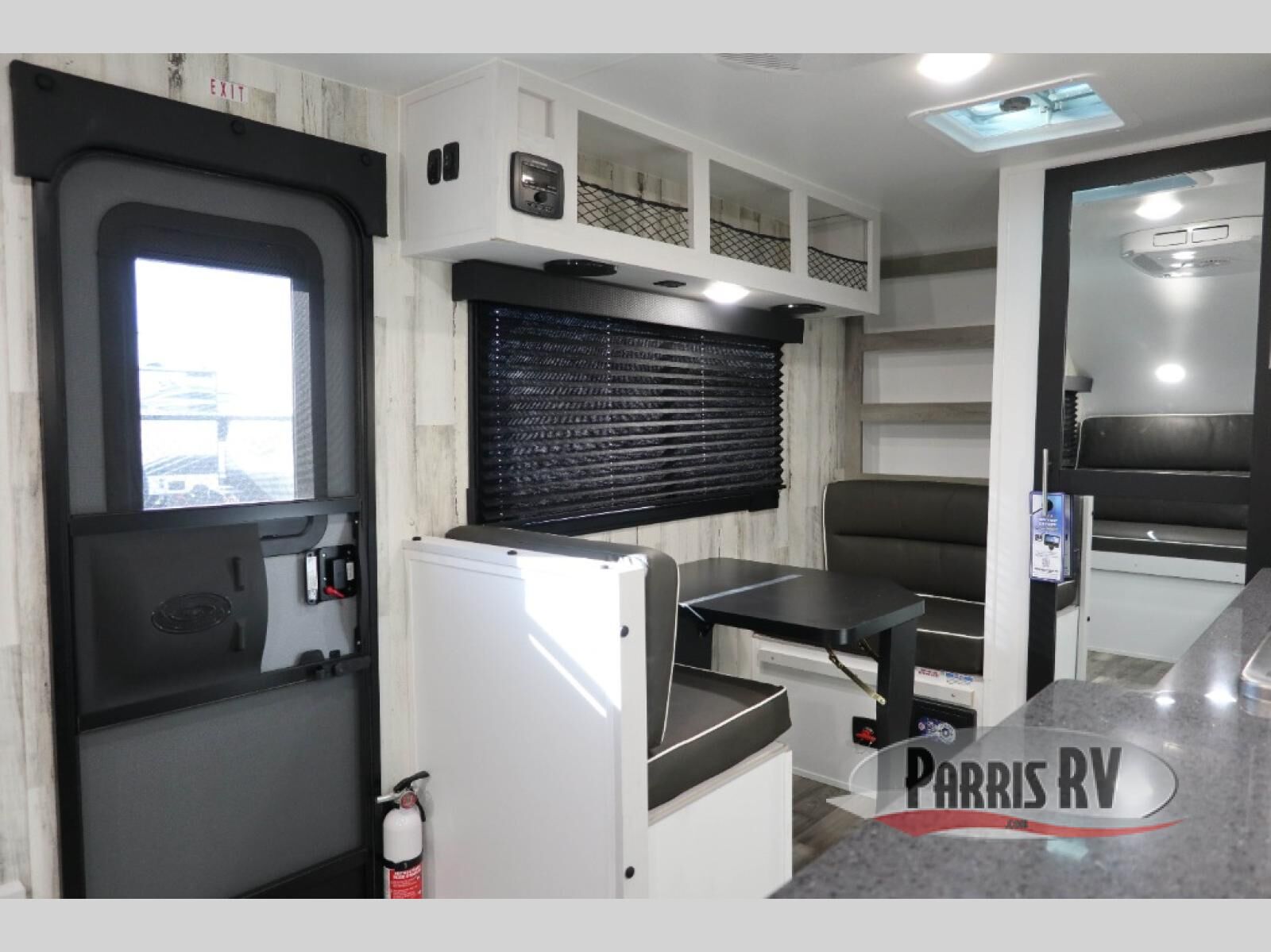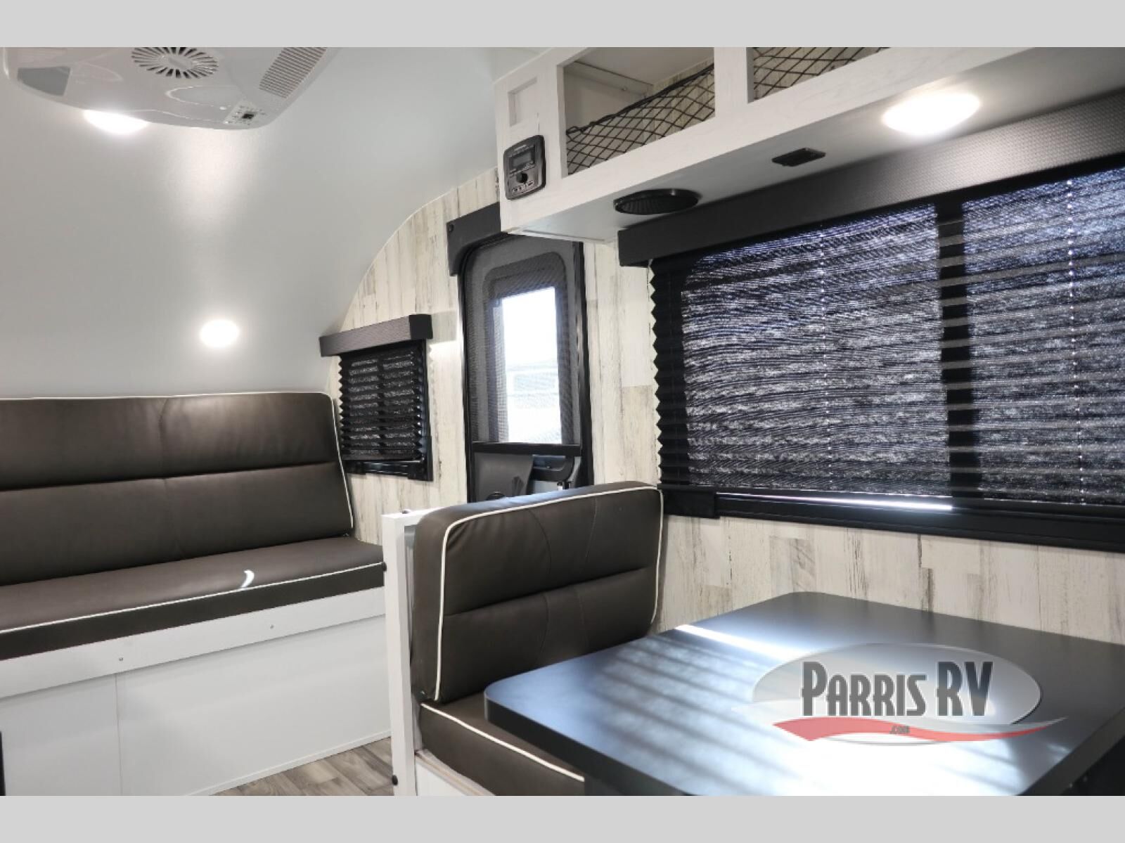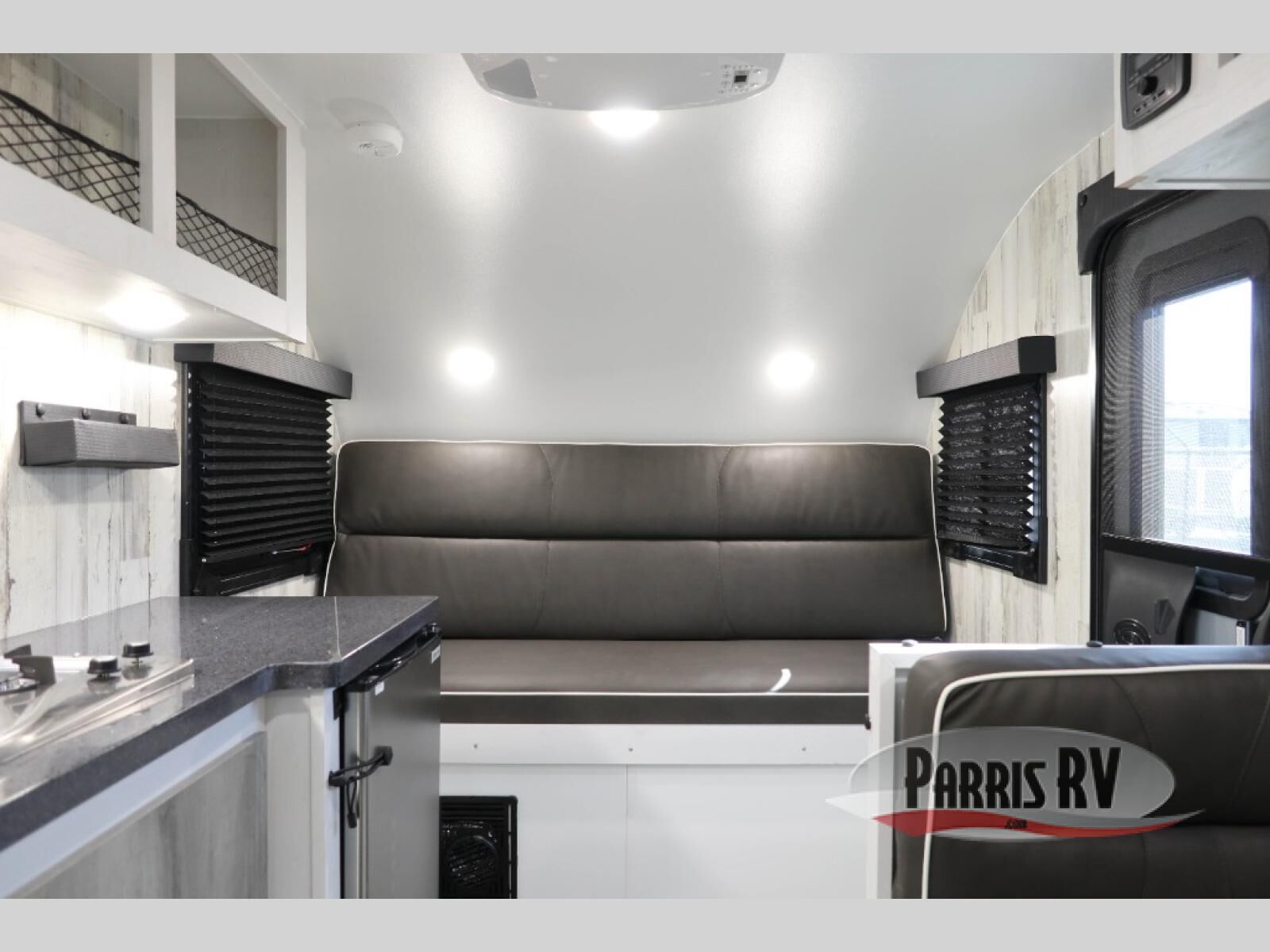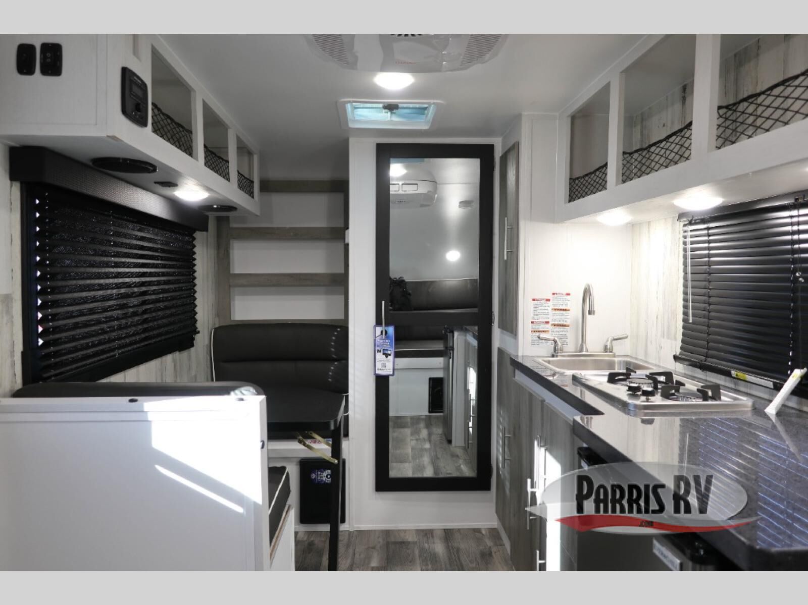 Head to your favorite campgrounds with your favorite person in this travel trailer! Relax each evening in true comfort on the front sofa while enjoying a snack that was stored in the kitchen pantry, and the sofa transforms into a full bed for sleeping at night too. The two person dinette offers a comfortable place to play games and enjoy your meals at that were prepared using the two-burner cooktop, 3.3 cu. ft. 12V refrigerator, and single bowl stainless steel sink. There are shelves and overhead cabinets throughout to store your items, and a rear corner wet bath to freshen up in each morning with a fantastic vent to eliminate any unwanted steam!