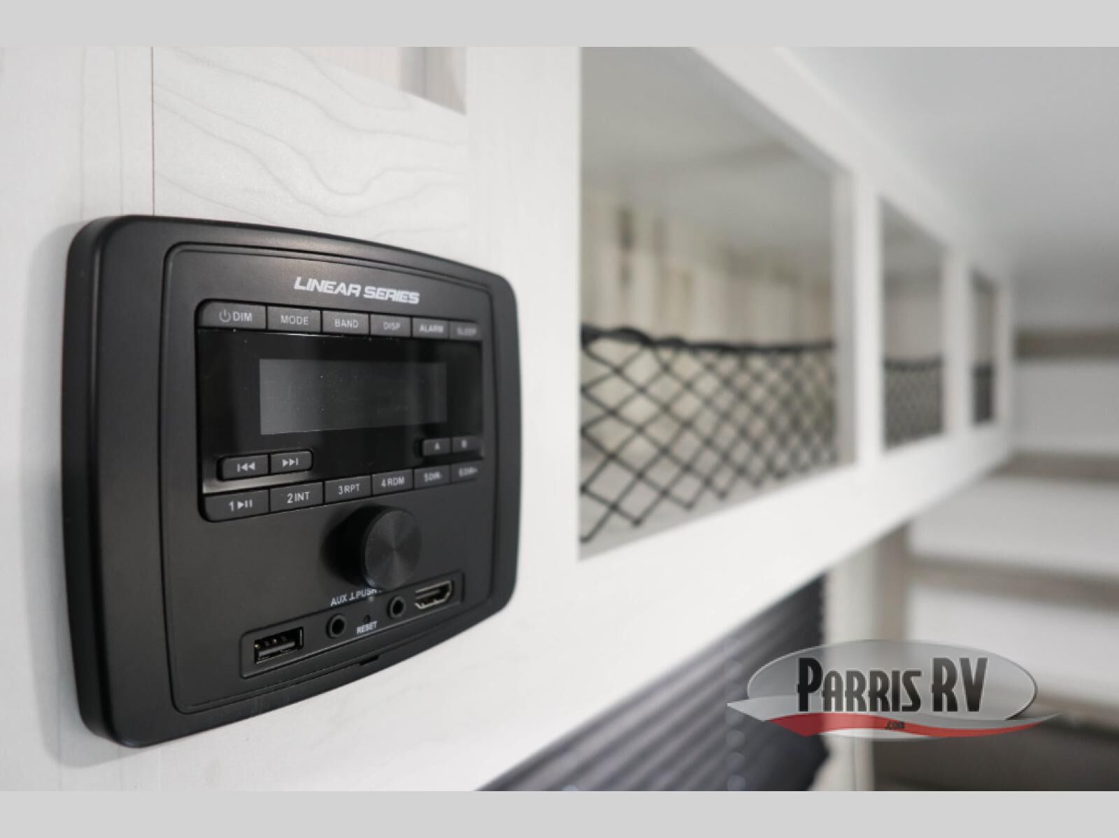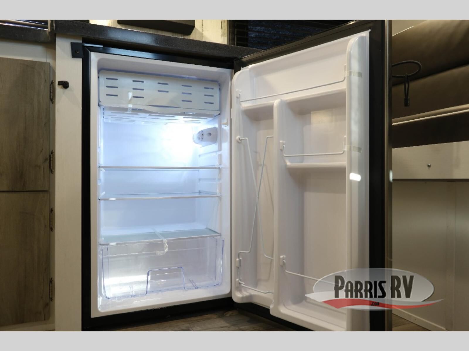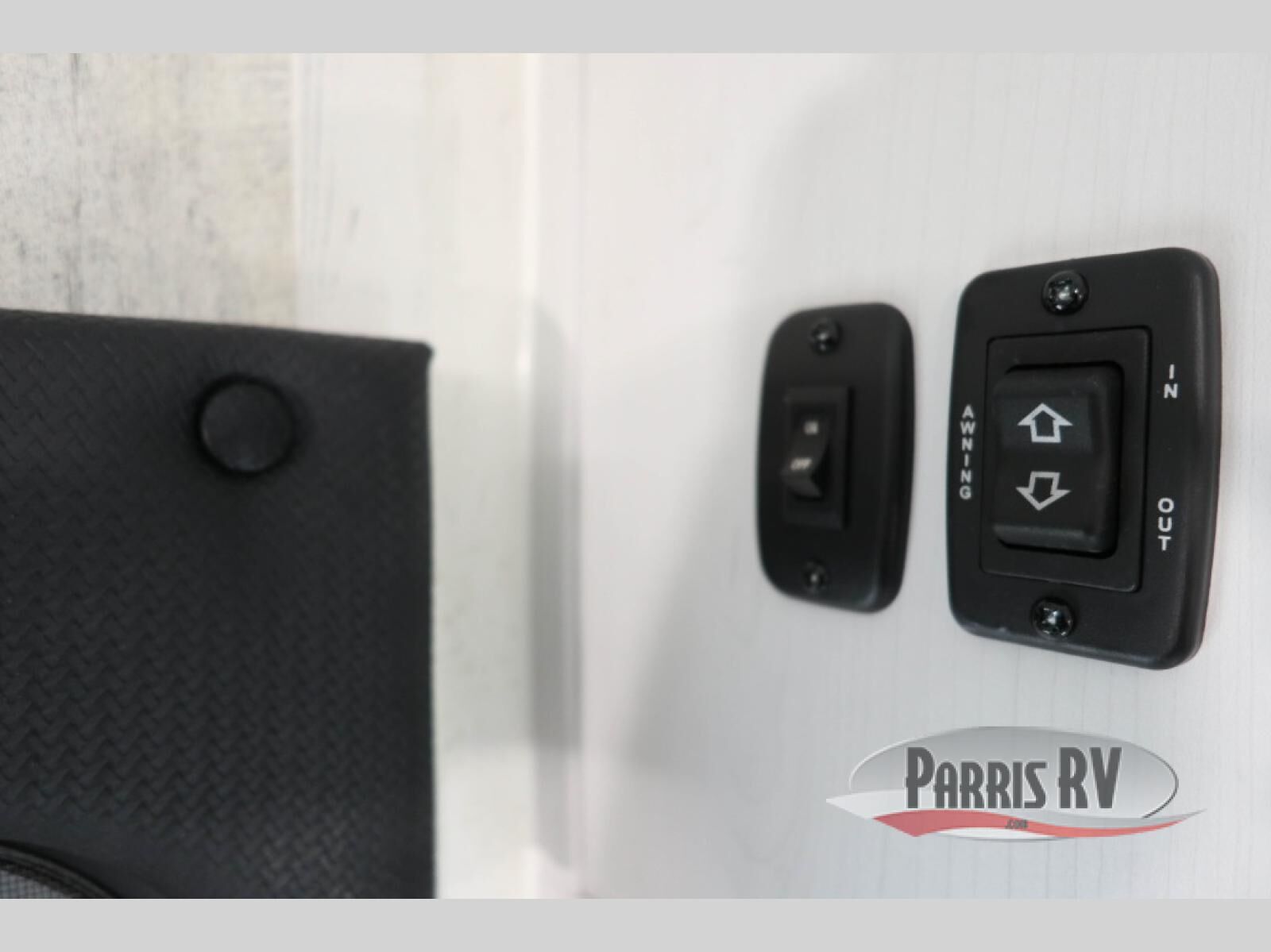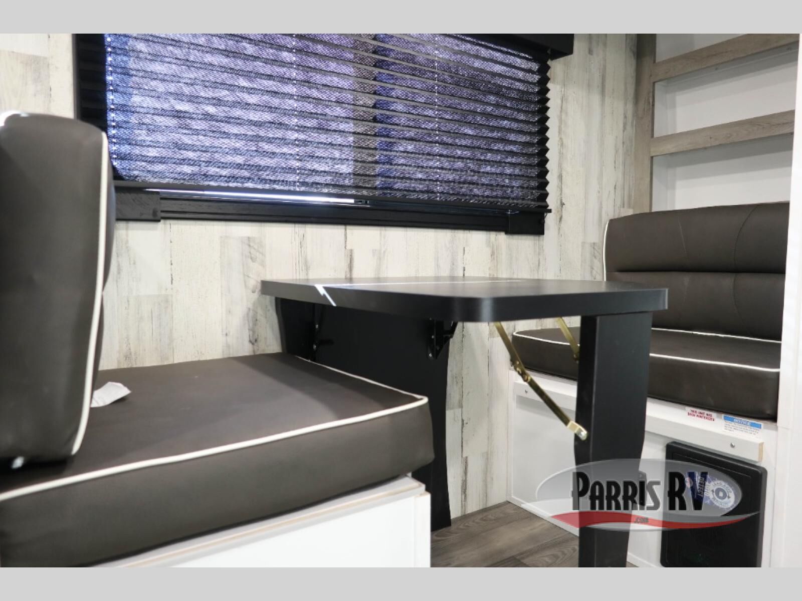 Head to your favorite campgrounds with your favorite person in this travel trailer! Relax each evening in true comfort on the front sofa while enjoying a snack that was stored in the kitchen pantry, and the sofa transforms into a full bed for sleeping at night too. The two person dinette offers a comfortable place to play games and enjoy your meals at that were prepared using the two-burner cooktop, 3.3 cu. ft. 12V refrigerator, and single bowl stainless steel sink. There are shelves and overhead cabinets throughout to store your items, and a rear corner wet bath to freshen up in each morning with a fantastic vent to eliminate any unwanted steam!