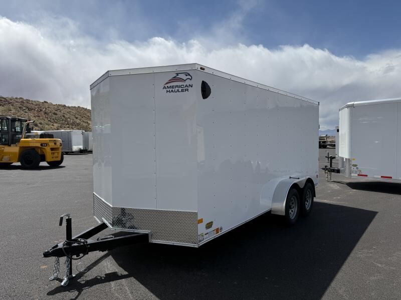 Stock #: AH0022 Trailer Specs: Color: White .024 Aluminum Door/Ramp: Rear Ramp Door Weight: 2,300 lbs. | GVWR: 7,000 lbs. | Payload: 4,700 lbs. Axle(s): 2-3,500 lb. Dexter Spring Electric Axle w/ EZ Lube Hubs Tire/Wheel: ST205/75R15 | Load Range C Coupler: Type: Bumper Pull | Size 2-5/16" | 7-Way 12V Connector 16" OC Vertical Posts | 16" OC Crossmembers | 24" OC Tube Roof Bows 1 Year Limited Warranty Standard Features: 2"x4" Tube Main Frame 1-Piece Aluminum Roof 16" Starbright Stoneguard 1/8" Economy Sidewall Liner 3/4" PlexCore Flooring (4) 500 lb. Wall Mounted Rope Rings 32" Side Door w/ Bar Lock Flow-Thru Sidewall Vents 12v Interior LED Dome Light 12v Exterior LED Lighting Smooth Aluminum Radius Fenders Undercoated Chassis Common Addons: Wall Mounted Spare Tire 10 ft. E-Track Stick Recessed 2,500# D-Ring WASATCH TRAILER SALES - LARGEST TRAILER SELECTION IN UTAH Hurricane: (435) 239-8920 | 6477 W Foothills Canyon Dr. Hurricane, UT 84737 View More Inventory: www.wasatchtrailer.com Over 2,000 trailers in stock at Wasatch Trailer Sales! With three convenient Utah locations - Layton, Springville, and Hurricane - finding the perfect trailer has never been easier. We offer one of the largest inventories around, backed by quality you can trust, superior value, and unparalleled pricing. Don't see exactly what you need? Call or text 435-239-8920 with 20+ top manufacturers and easy financing, we'll get you on the road fast! Whatever you haul, we've got the right trailer - in stock year-round!