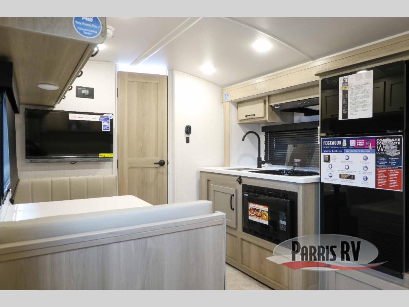 With any Rockwood GEO Pro travel trailer by Forest River you will enjoy easy towing, durable construction, and off-road capabilities with larger 15" tires and a lift kit! Each model is constructed with complete composite wall construction for added strength and durability, and the torsion axle, Rubber-Ryde suspension will make towing easier than ever. Inside, you'll find sleek roller shades for added privacy, a 12V refrigerator and a microwave, plus a 20,000 BTU furnace to keep you warm during the colder camping months.