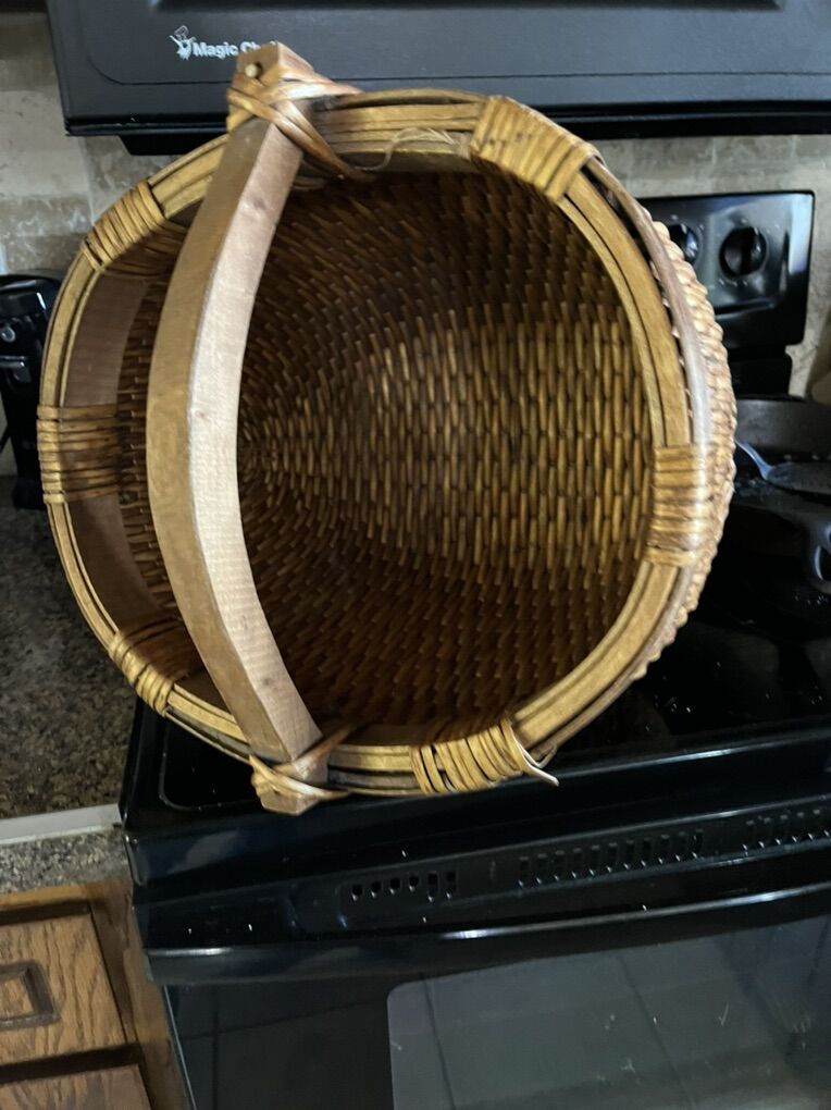 PayPalThis is a very beautiful hand woven deep Chinese basket with a wooden handle questions please text