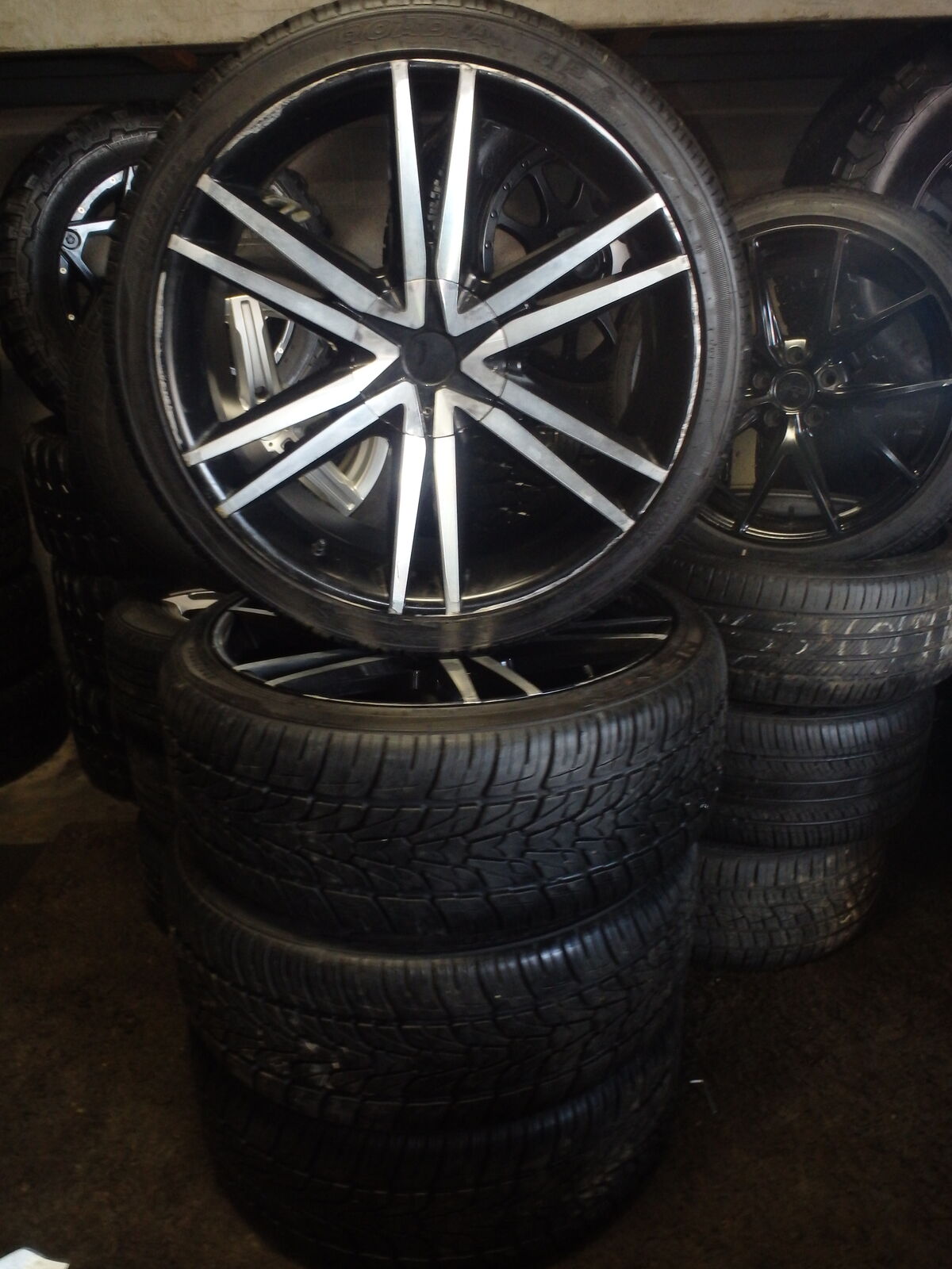 SET OF WHEELS 22X9.5 J ET 15 , 5X120 AND USED TIRES 265/35R22 THESE SET OF WHEELS ARE IN GOOD CONDITION. FOR ONLY $680. IF WE NEED TO TRANSFER TPMS SENSORS FROM OTHER WHEELS ONTO THESE, WE WILL DO IT FREE OF CHARGE CALL FOR ANY QUESTIONS AT JOSE OR ROBERTO AT 801 878-4556 OR 801 410-4460 OR VISIT US AT J&J TIRES 7615 STATE STREET MIDVALE UTAH ,WE'RE OPEN MONDAY TO SATURDAY FROM 9:00 AM TO 6:00 PM, WE HAVE A LOT MORE AN USED TIRES AND BRAND NEW CALL US IF YOU ARE LOOKING FOR AN OTHER SIZE WE MAY HAVE'IT....