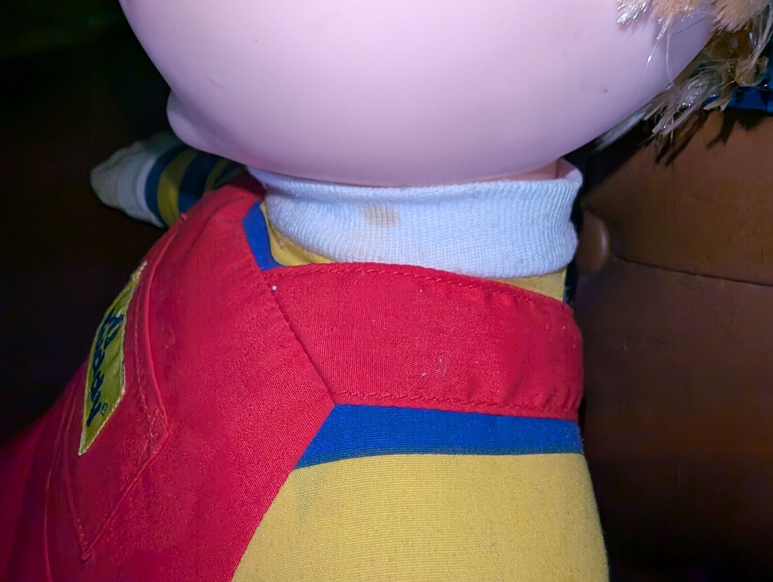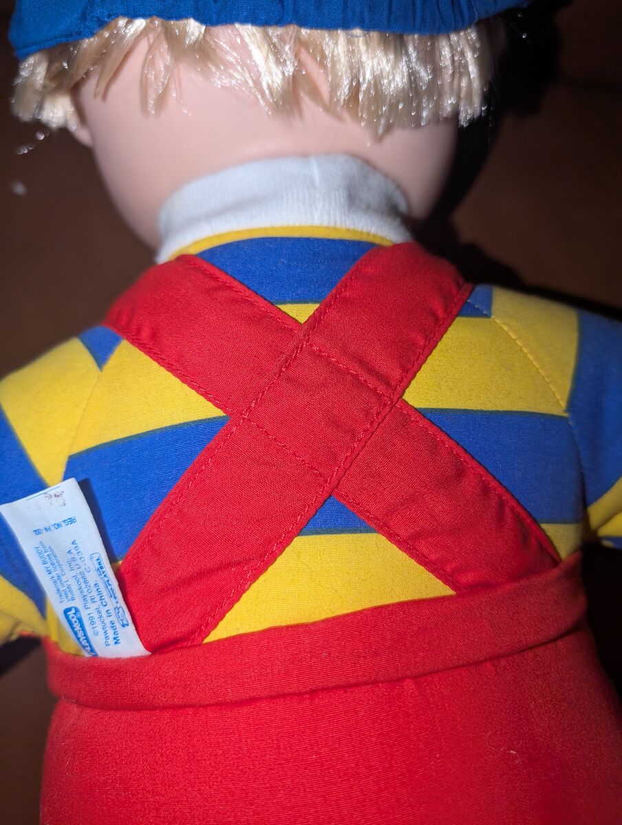 20" MY BUDDY doll from 1991. See all pictures. Small stain on shirt collar. Can probably be bleached out but I didn't want to mess with it. Back of doll/sleeve has small black stain. Overall condition is good for it's age. Clean. Smoke free home.