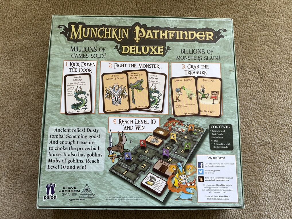 COMPLETE Munchkin Pathfinder Deluxe Game. Based on Steve Jackson's original Munchkin game. Steve Jackson Games, 2015. 3-6 players, ages 10+. Very good condition. Complete, no missing pieces. Text only. Cash or Venmo.