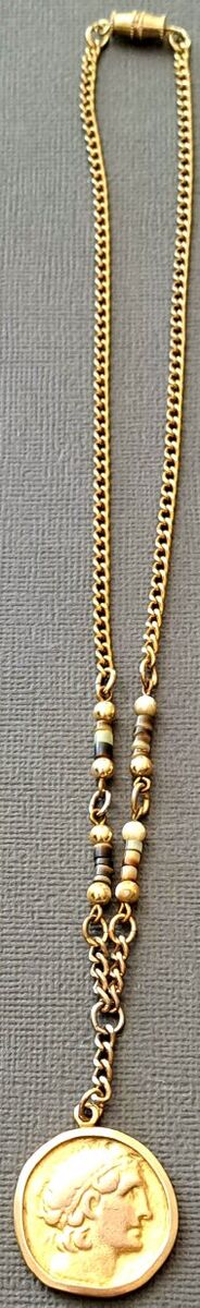 Vintage Greek Coin Pendant With Decorative Gold Necklace - $20 Cash