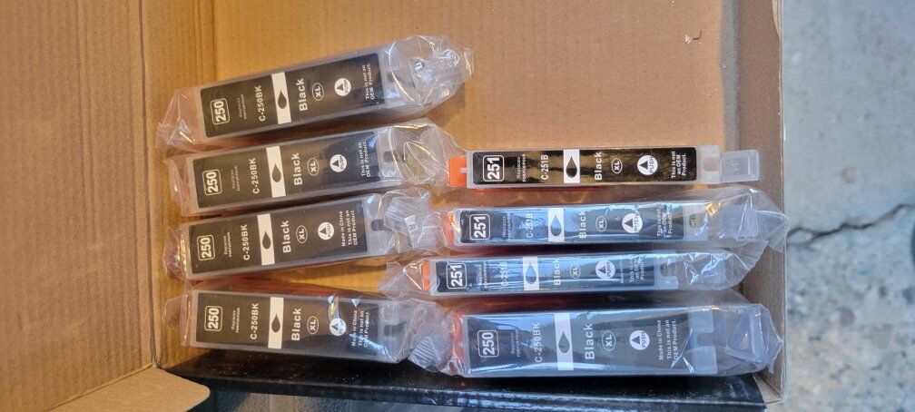 $2 each, Canon 250 and 251 black toner cartridges. Reordered and just more black than I can use. Got new printer and no longer use these cartridges.