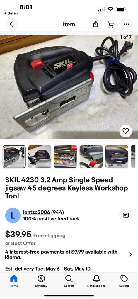 Nice jigsaw in good working condition , older but does a good job! This exact item is 39.99 plus tax online now as shown! . Don’t pay retail pricing, call Dustin instead at 801-205-3404, I need it gone!