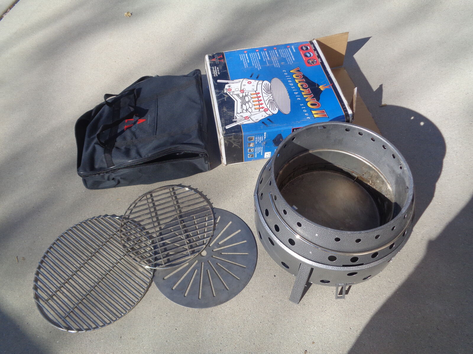 VenmoVolcano collapsible stove works great as charcoal stove of for simmering Dutch oven treats. Also can be used as small campfire during fire restrictions in forest. We are no longer camping and someone else could make better memories with it.