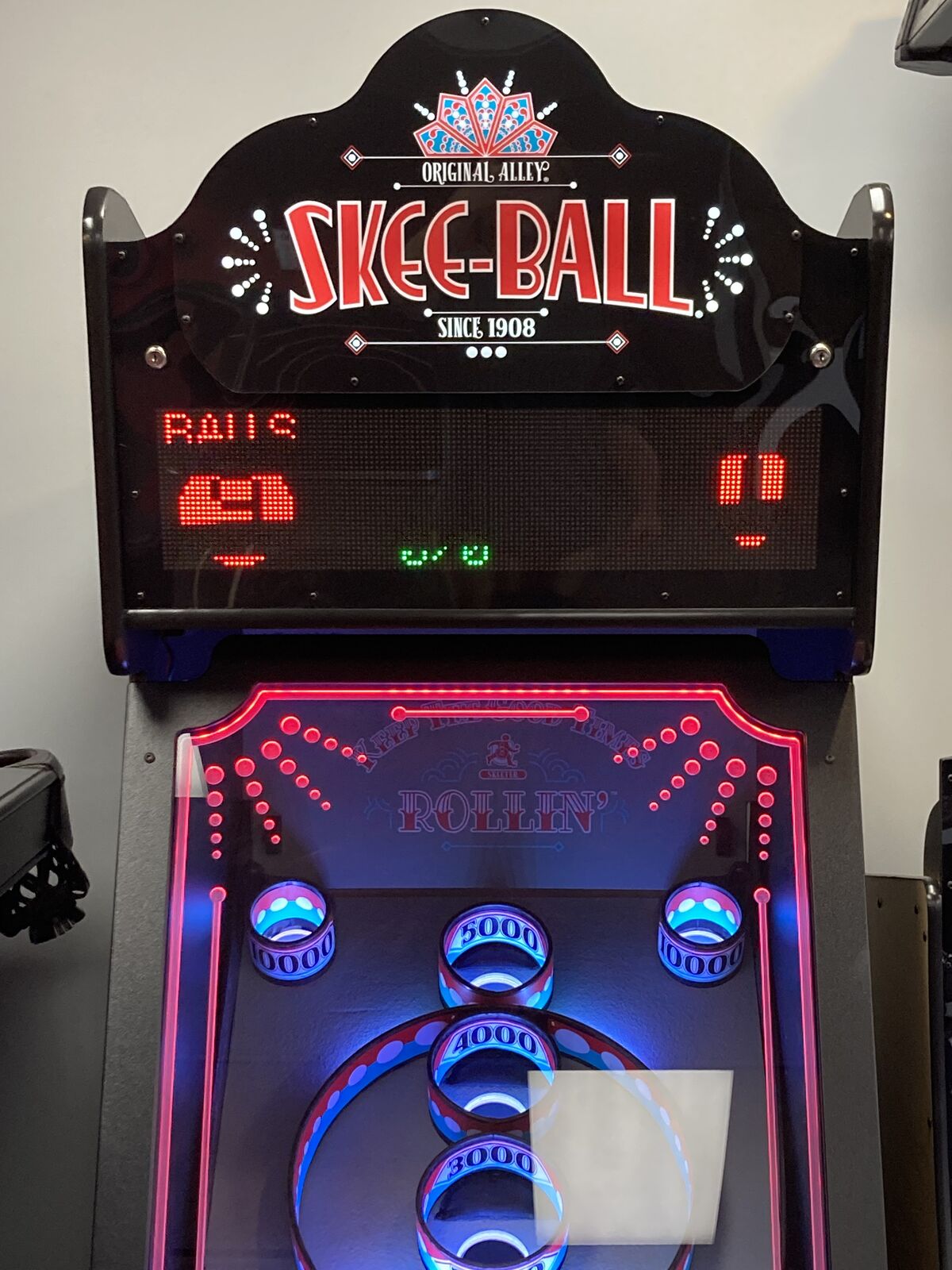 An illuminating arcade machine, the Skee-Ball® Glow is sure to improve the ambience of any gameroom or home arcade. Aptly named for its elaborate lighting package, the Glow provides the looks and sounds that reflect the vintage and glamorous style of that time period.