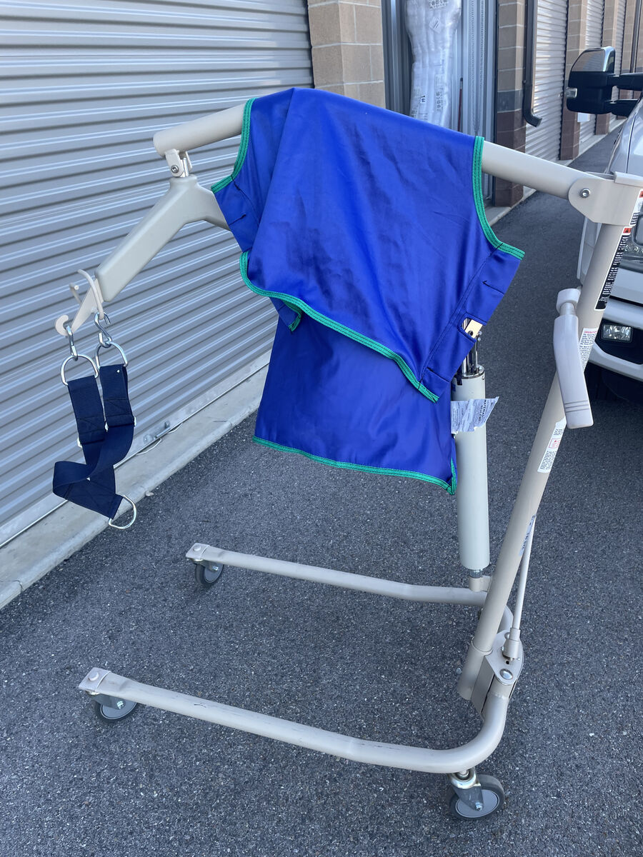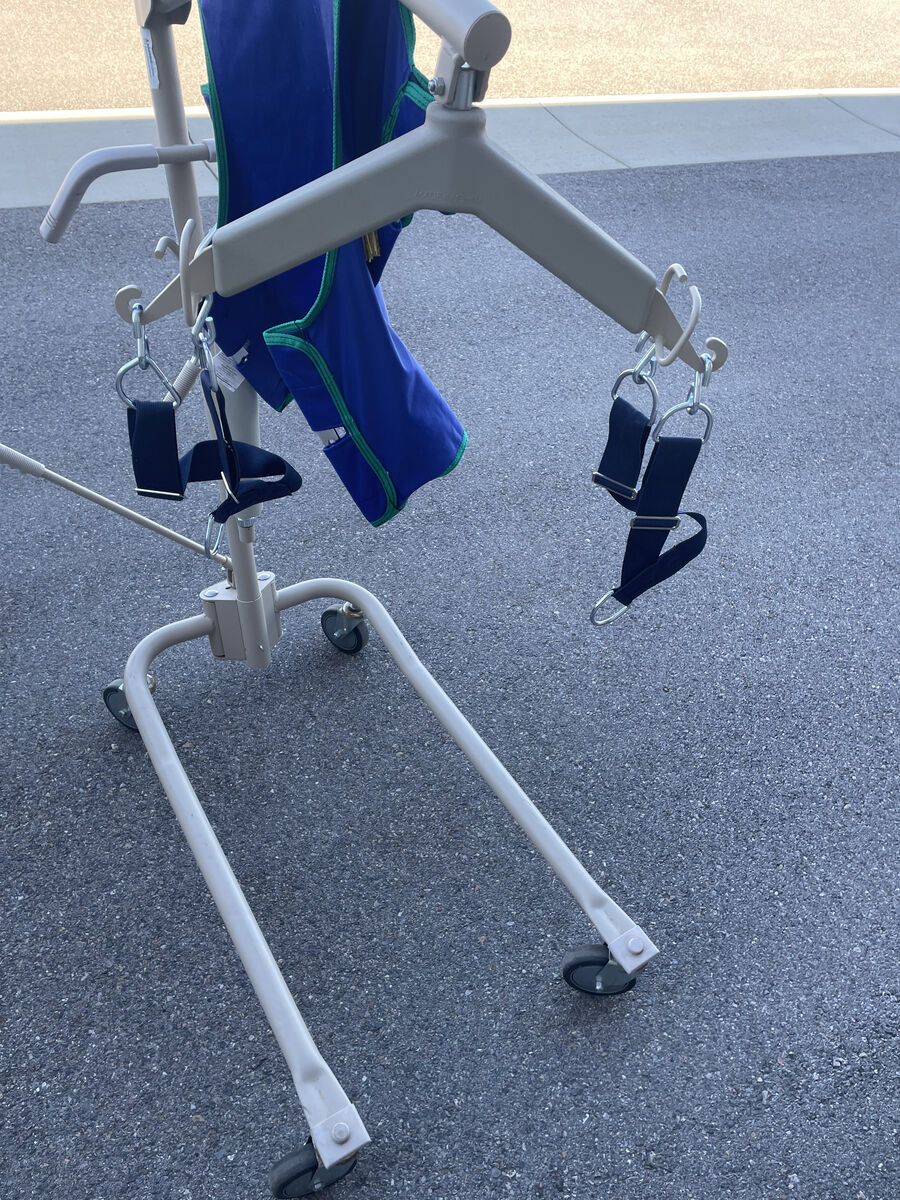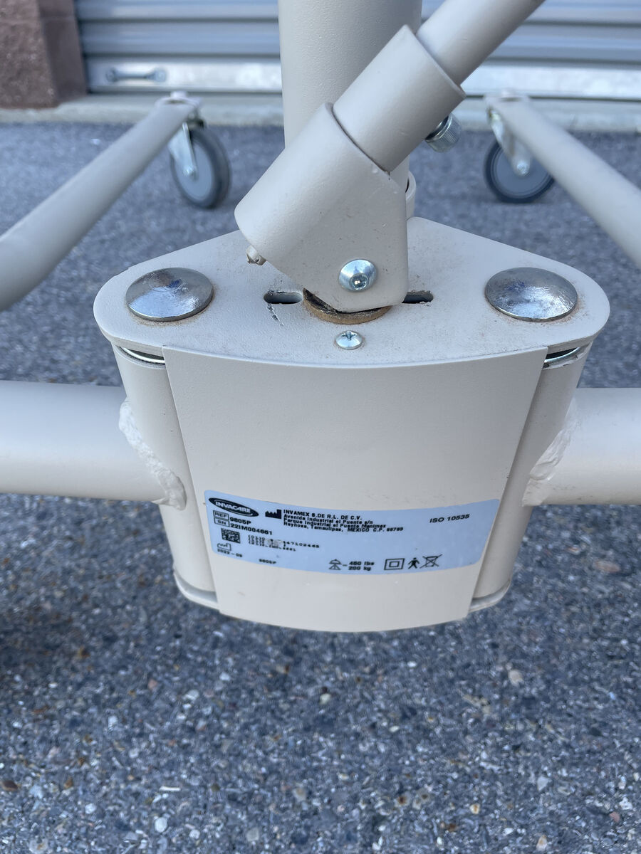 This is in great, clean condition. Has a 450 Lb weight capacity. easy to move around with the wheels. Comes with sling and sling straps.