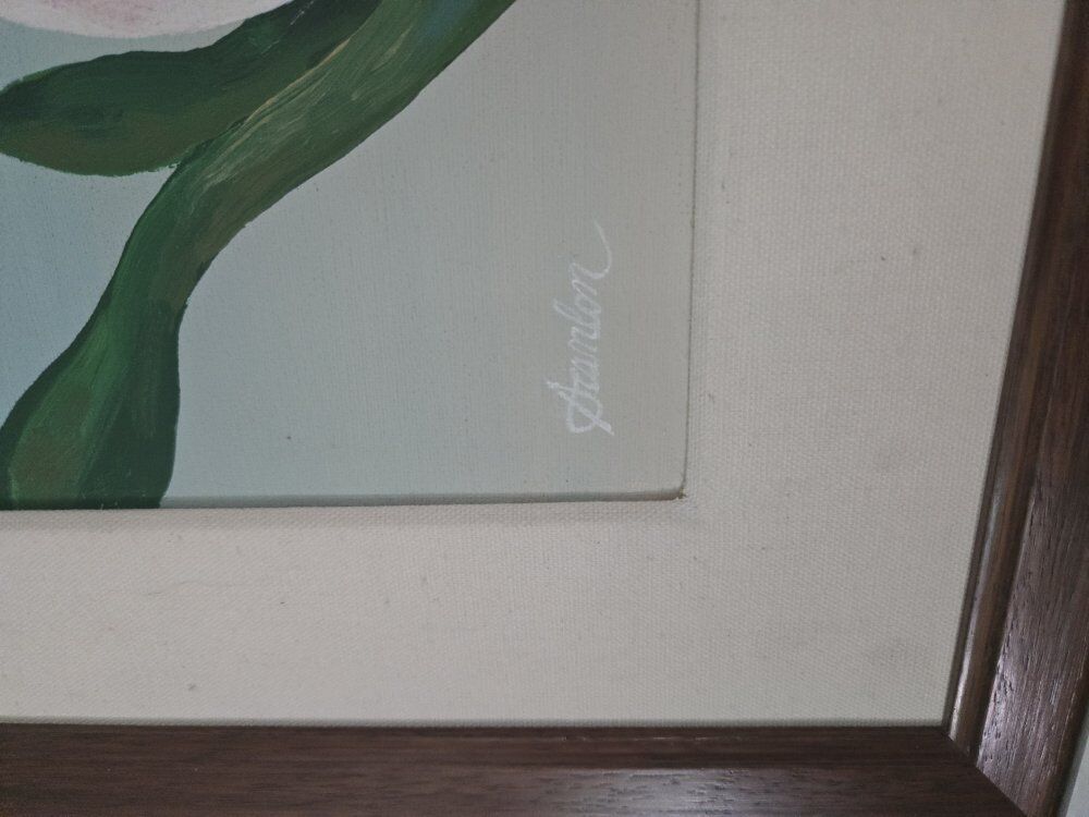 Very pretty original artwork, signed by artist. I believe it's an acrylic painting. Canvas in square frame. 75 OBO