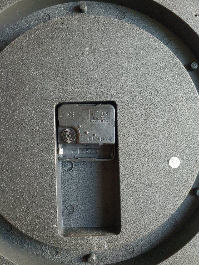It is a vintage-style wall clock and uses a quartz movement, which requires a battery. (One AA battery) Features Roman numerals and decorative hands.