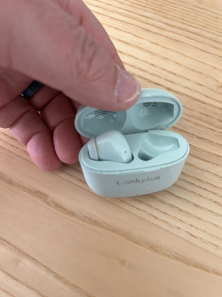 One ear bud is missing