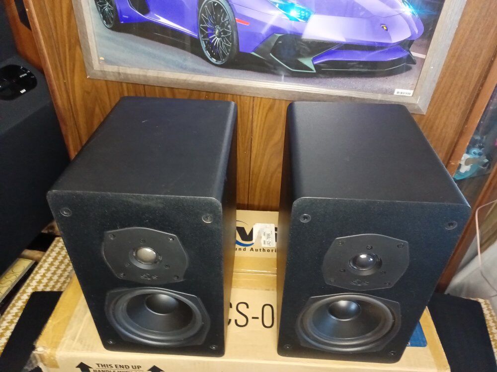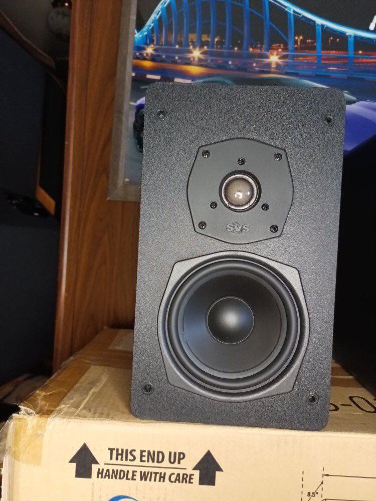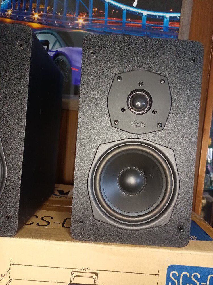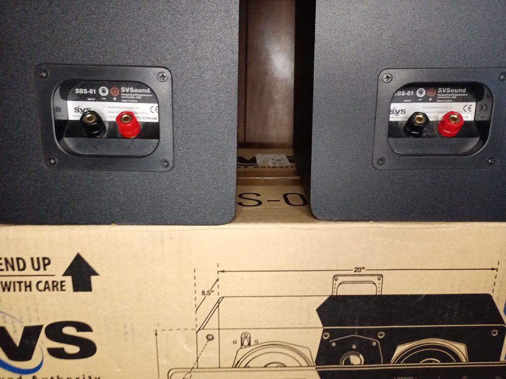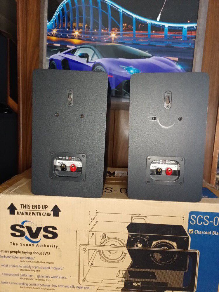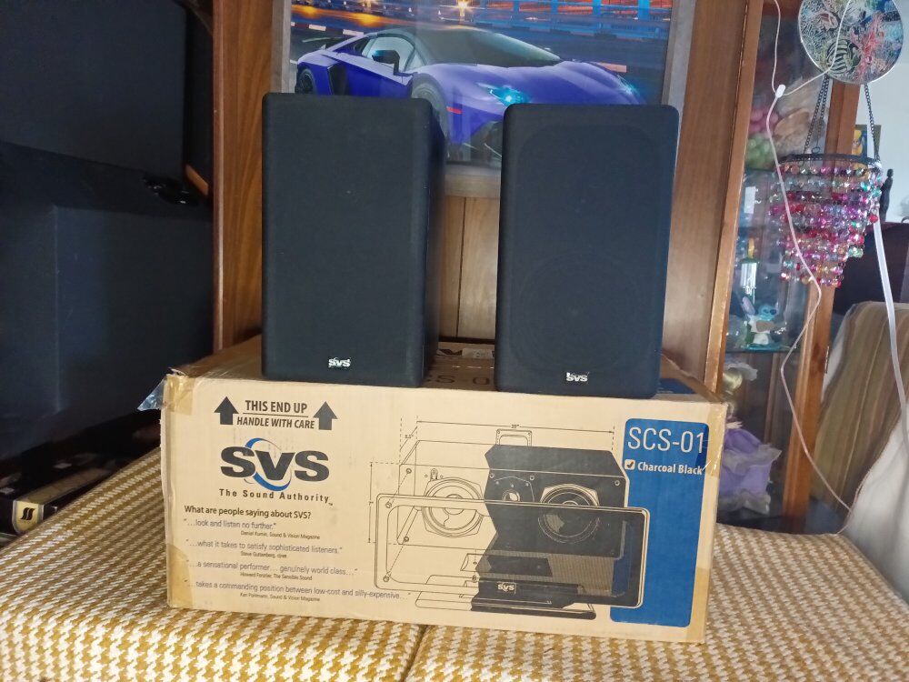 SVS - SCS - 01, CENTER, SBS - 01, book shelf speakers, ( one of the abs-01 )- has a small amount of damage to the side, SCS - 01, new in open box, has not been removed from box, SBS - 01, are in good condition.
