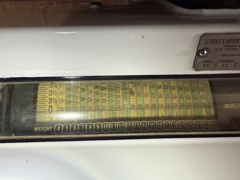 ApplePayInternational Business Machine model 97 Dayton scale from 1934. In good condition. Completely functional with no damage or repairs.
