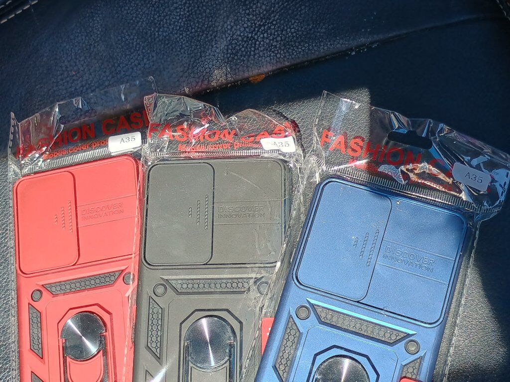 brand new in package Samsung a35 phone cases with camera cover and kickstand. I have red, blue and black. $8 each or $15 if you'd like all three colors. pickup in Ogden either at the North end of town by 5 points or the South end of town by wsu. cash only.