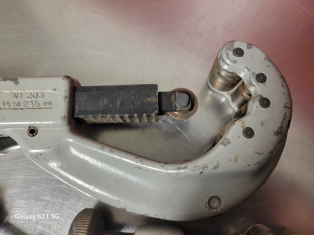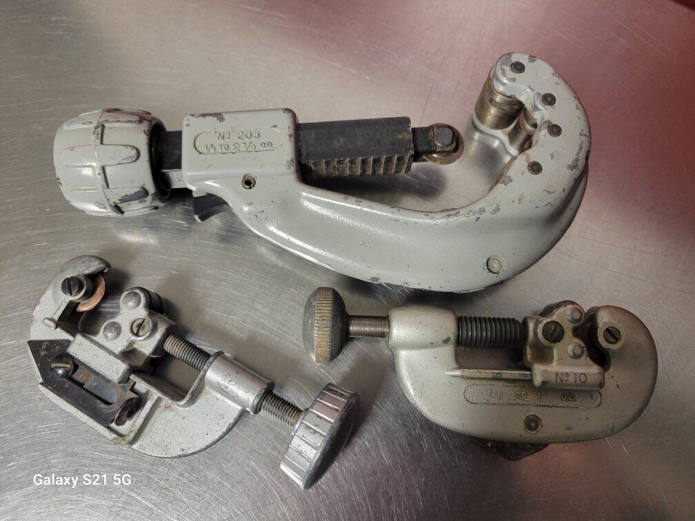 Lot of 3 pipe cutters, well used, need blade replacements as they are pretty rough.
