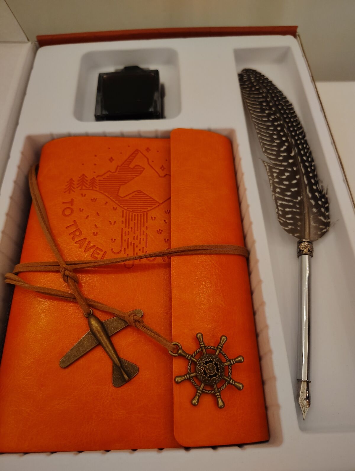 A beautiful travel journal and calligraphy set, perfect for journaling, creative writing, or as a unique gift.