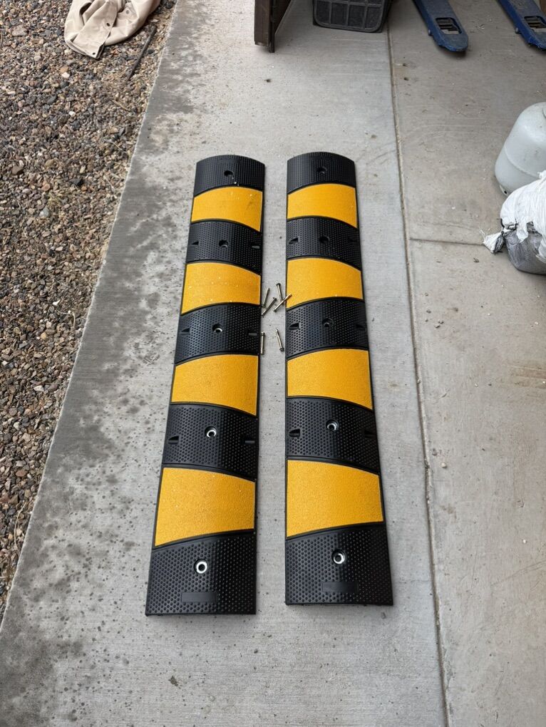 Brand CXRCY Material Rubber Color Yellow&black Item Weight 110 Pounds Product Dimensions 71.1L x 12W x 2.4H Load Capacity 22046 Pounds 2 Pack 2-Channel : 2 Pack 2-Channel High Quality Rubber Driveway Speed Bumps. Overall Dimension : 71.1‘’ x 12 W x 2.4 H. Load Capacity :2,2046lbs Industrial-grade Materials : Durable & Stable&Waterproof. The Cable Protector Ramps are made of industrial grade rubber , which are Durable, great compression resistance performance and can resistant to UV light, water, oil and extreme temperatures Bright Color&Safety : With yellow and black the Heavy Duty Cable Hose Protector are high visible and safer during the day and night Application : The Driveway curb ramps are ideal for motor vehicles and also widely used in garage ,driveway stop and shopping mall,parking lots hospitals community indoor and outdoor. The Heavy Duty Cable Protector Ramp also can be used to protect power lines, hose & network cables extension cords Easy Installation & Remove : The CXRCY Driveway Speed Bump Hump with 8 bolts to install easily and stably