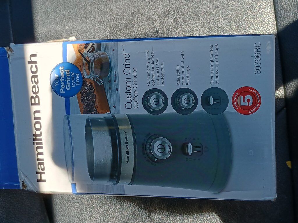 small, new in box Hamilton Beach coffee grinder to help you get the perfect fresh ground coffee you need to start your day off right. pickup in Ogden either at the North end of town by 5 points or the South end of town by wsu. $22 cash