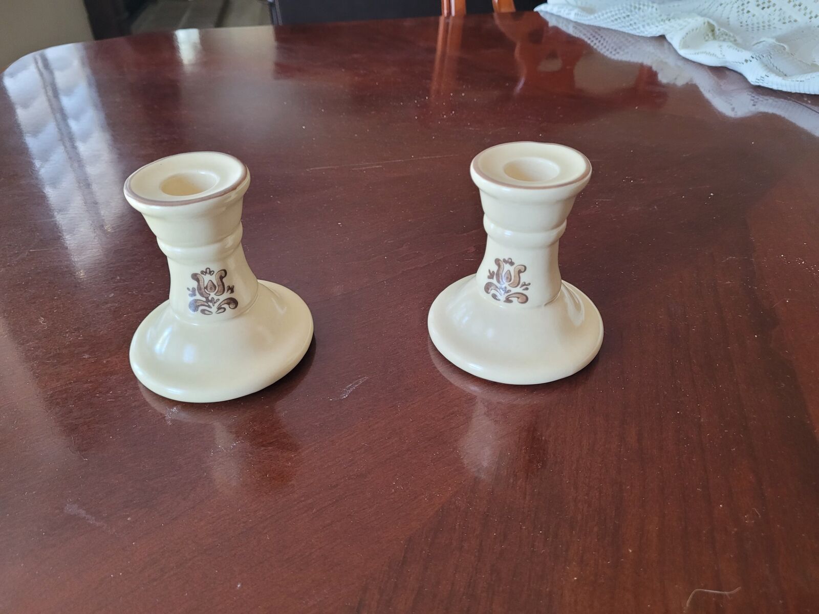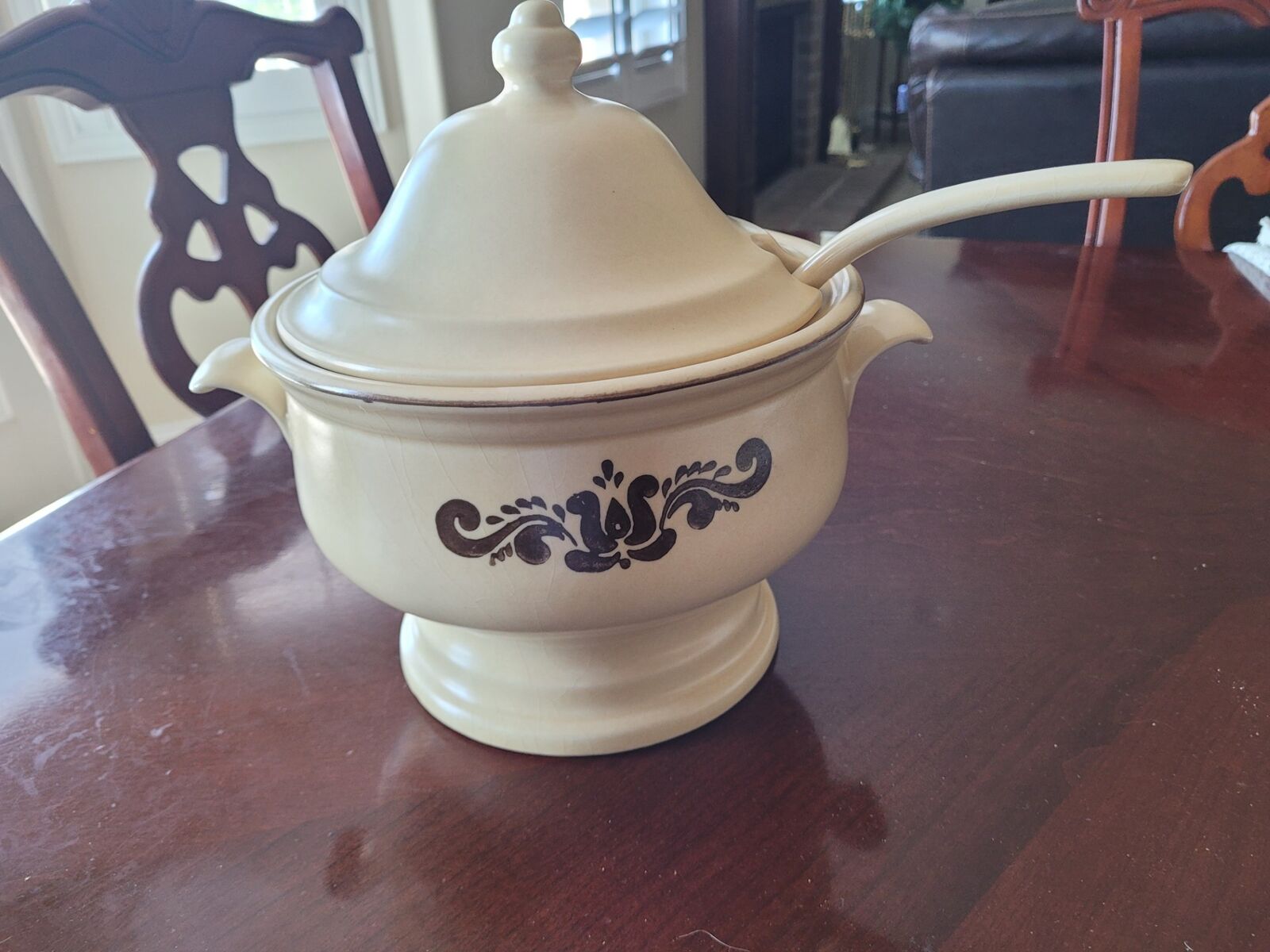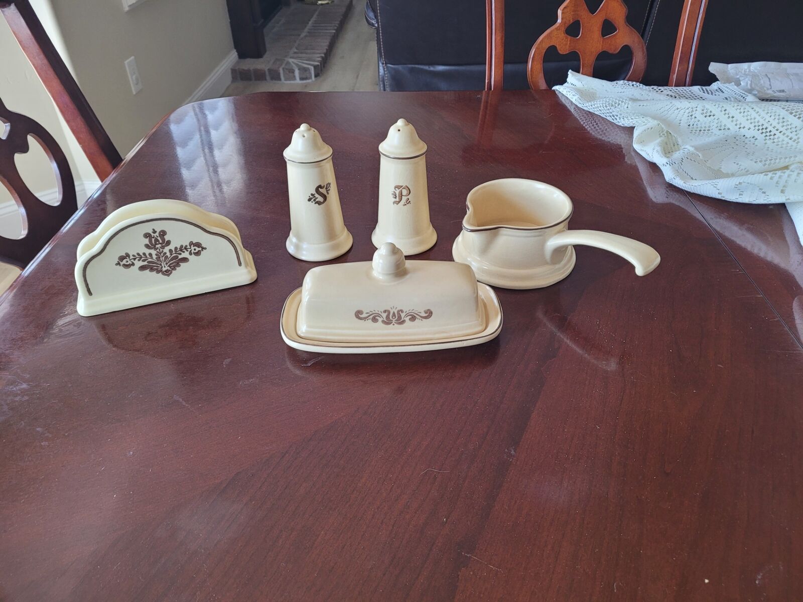 67 Pc of Pfaltzgraff Village Stoneware. Includes Dinner and salad plates, ceral bowls, Coffee cups and saucers, cream and suger, Soup Tureen, casserole dishes, large mixing bowl, platter, mugs, napkin holder, salt and pepper, butter dish, water pitcher, gravy boat, cookie jar and candle sticks.