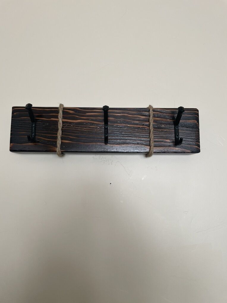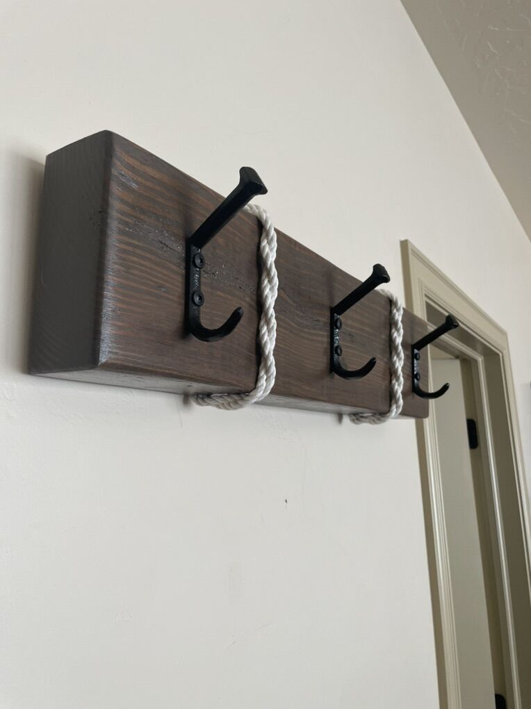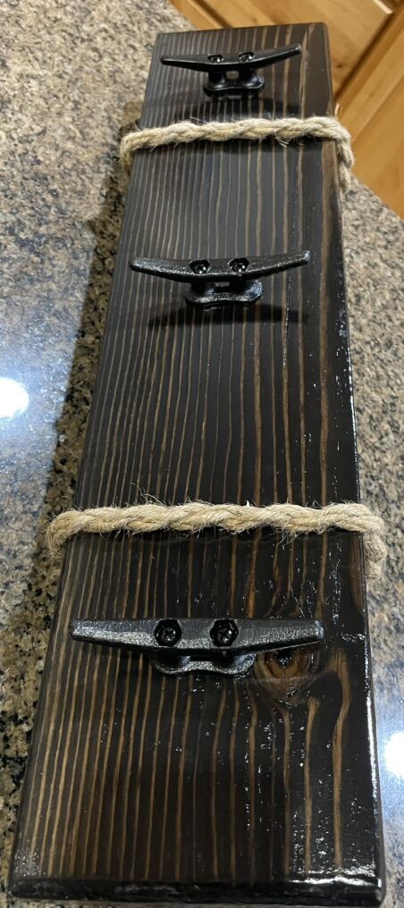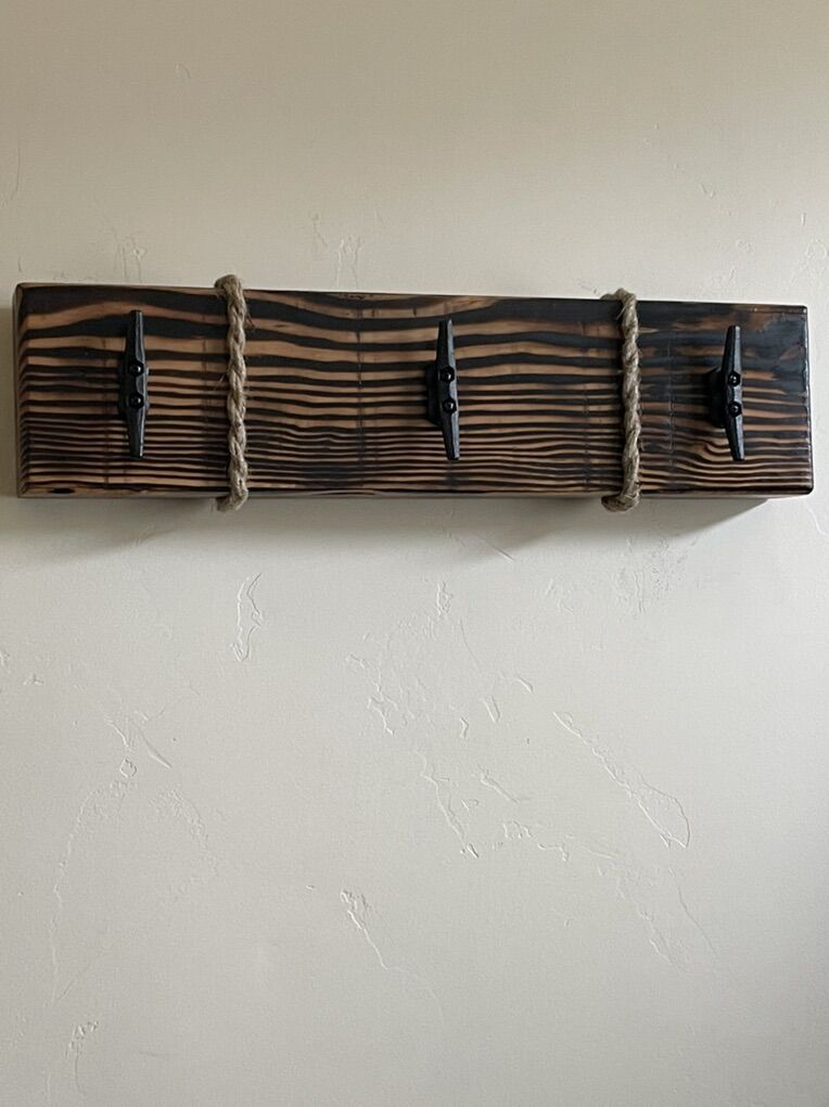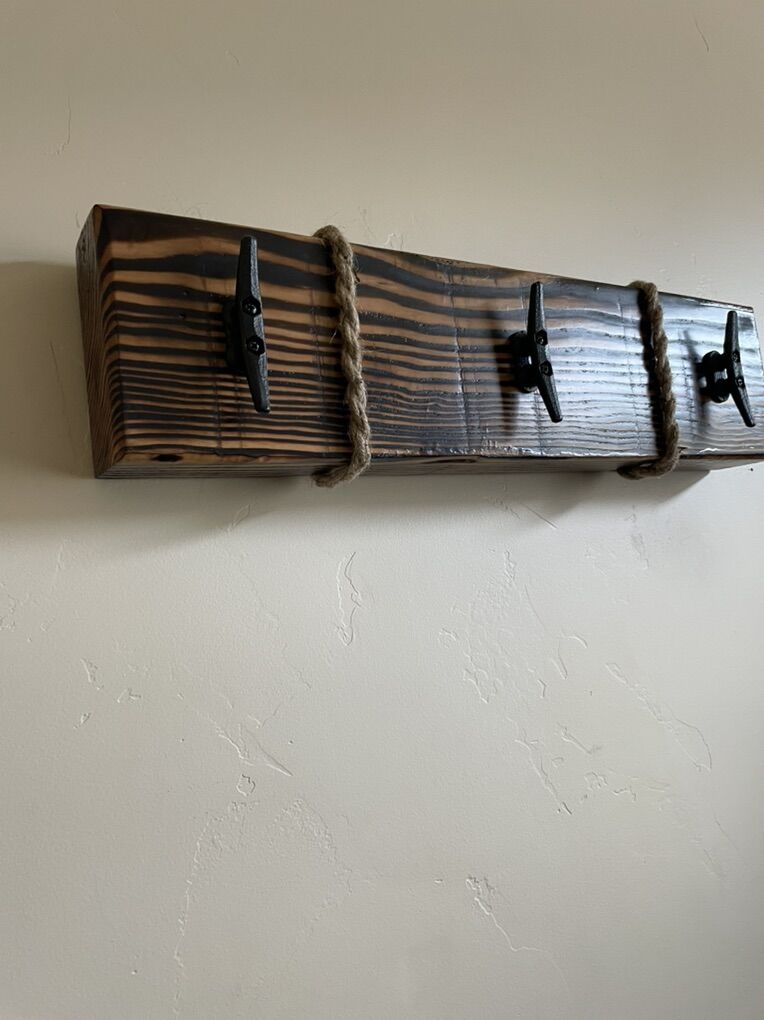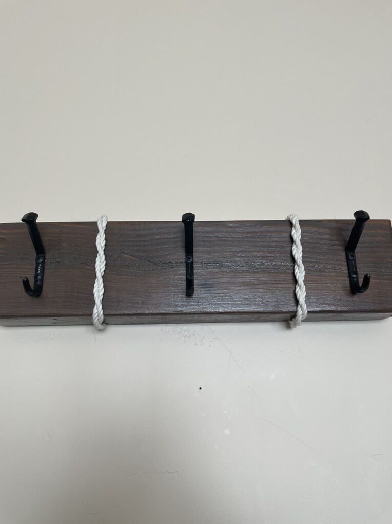 VenmoRustic hanger with boat dock hooks or rail road spike hooks. Custom made. 24”x6” different colors to choose from.