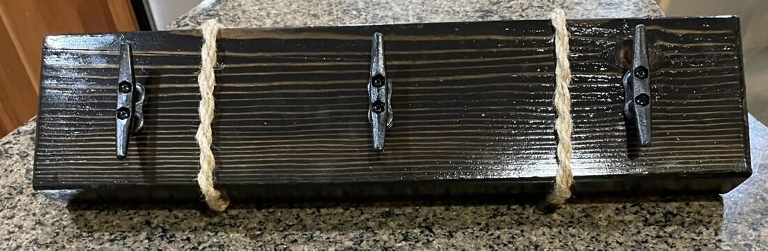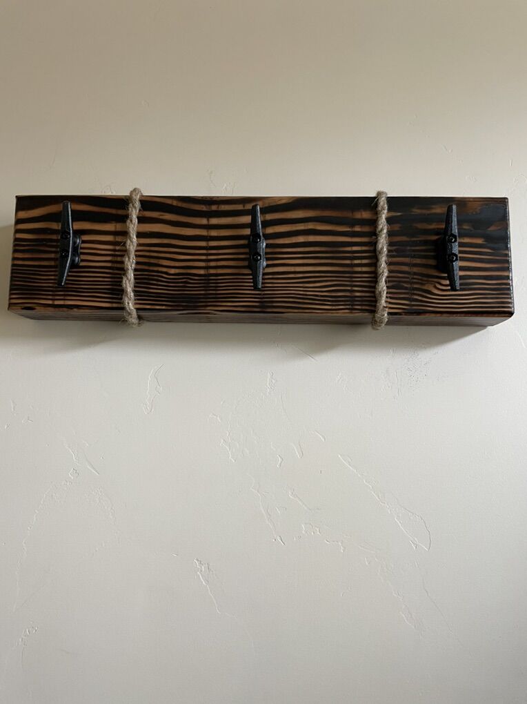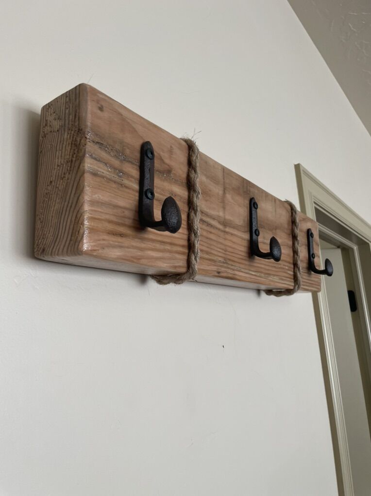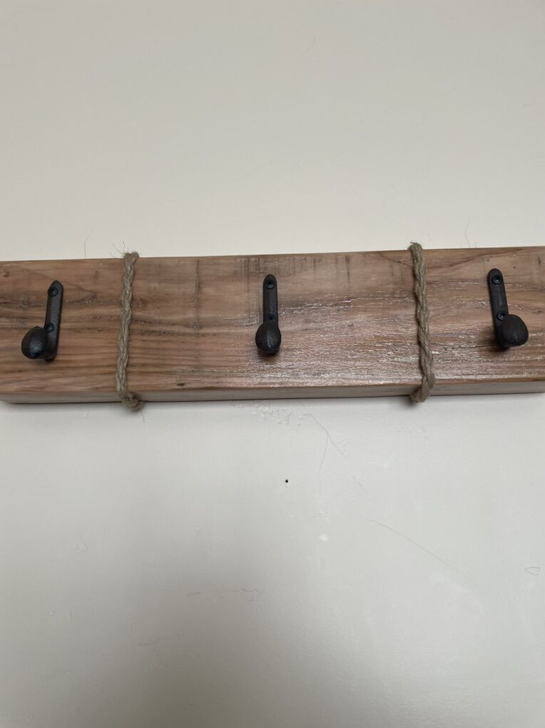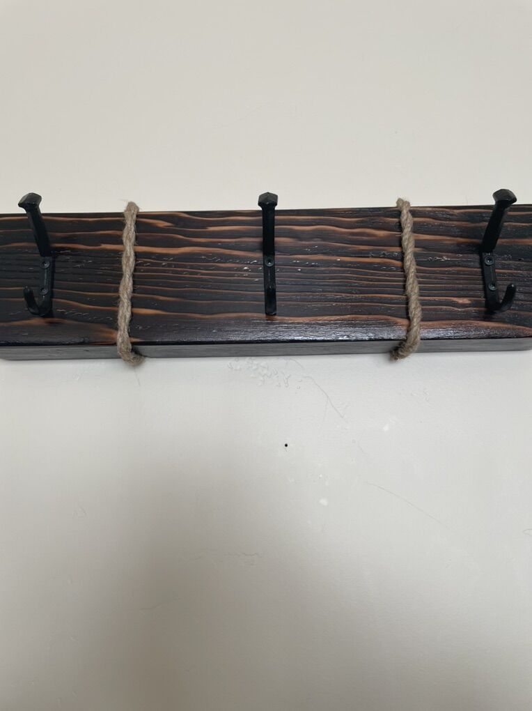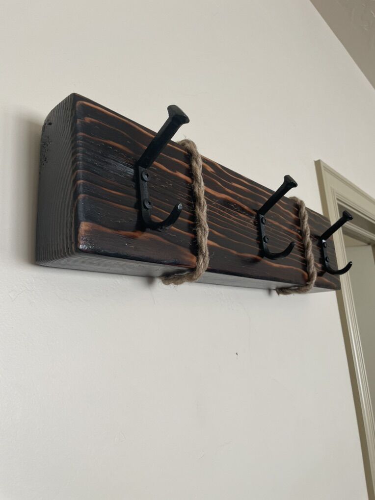 VenmoRustic hanger with boat dock hooks or rail road spike hooks. Custom made. 24”x6” different colors to choose from.