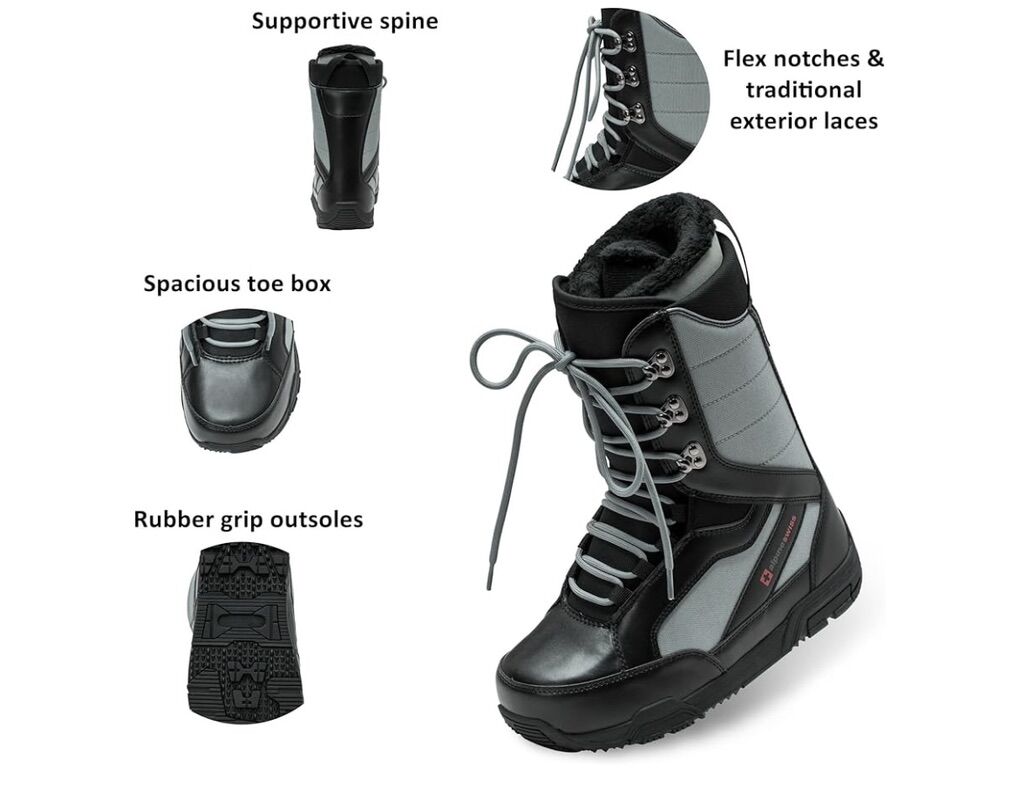 Mens Snowboarding Boots By Alpine Swiss Product Features: Faux Leather & Nylon STYLISH – The Alpine Swiss mens snowboard boots are stylish and the perfect option for any experience level from beginner to advanced.