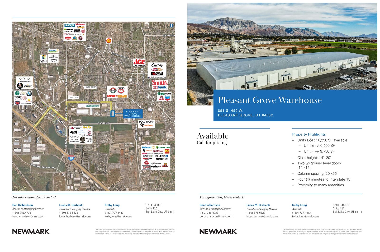 Please text Ben Richardson 801-706-1137, or Kolby Long 801-907-5950 for more information.