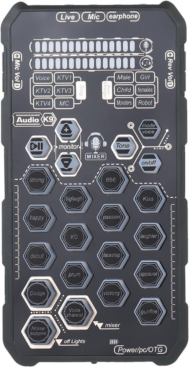 BRAND NEW HXBER LIVE HANDHELD SOUND CARB VOICE CHANGER FOR PHONE/PC WITH CARRYING CASE & ACCESSORIES. This is new, never used! (One was opened for the photos). It comes with everything shown including case, user guide, 2x aux cables, a USB-c charging cable, a small microphone, and a pair of headphones. These units usually sell for much more without all the accessories! This is your chance to save big-time so don't miss out!!