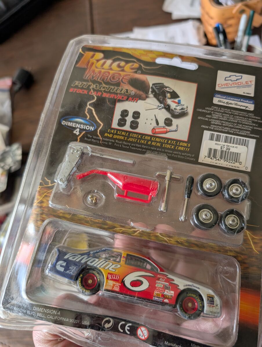 PayPalCapture the excitement of the race track with the Race Image Pit Action Stock Car Service Kit, featuring the iconic Mark Martin and his Valvoline Ford Taurus. This 1:43 scale model is a must-have for any motorsports enthusiast or diecast collector. It showcases the precision and detail that epitomize the world of stock car racing, making it an impressive display piece or a treasured addition to any collection. 5 dollars or best offer. Will ship world wide. Seen on the hit show Storage Wars!!