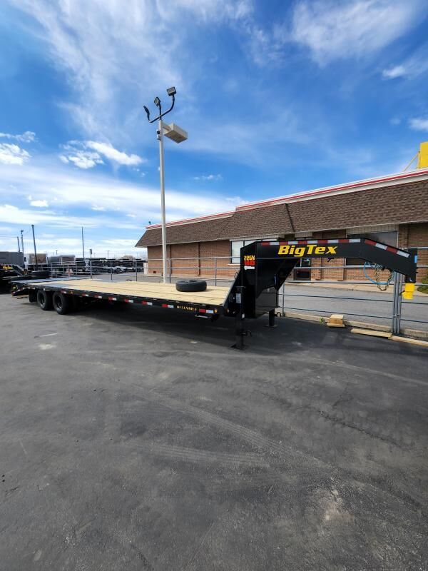 STOCK #: BTX0068 MANUFACTURE: Big Tex Trailers MODEL: 20' (+5) Gooseneck Flatbed SPECS WIDTH: 102" LENGTH: 25' (20' +5') DOOR(S)/RAMP(S): Mega Ramps WEIGHT: 6,690 lb GVWR: 23,900 lb PAYLOAD: 17,210 lb AXLE(S): Tandem Axles TIRES: 235R16 COUPLER: GN 2 5/16"\