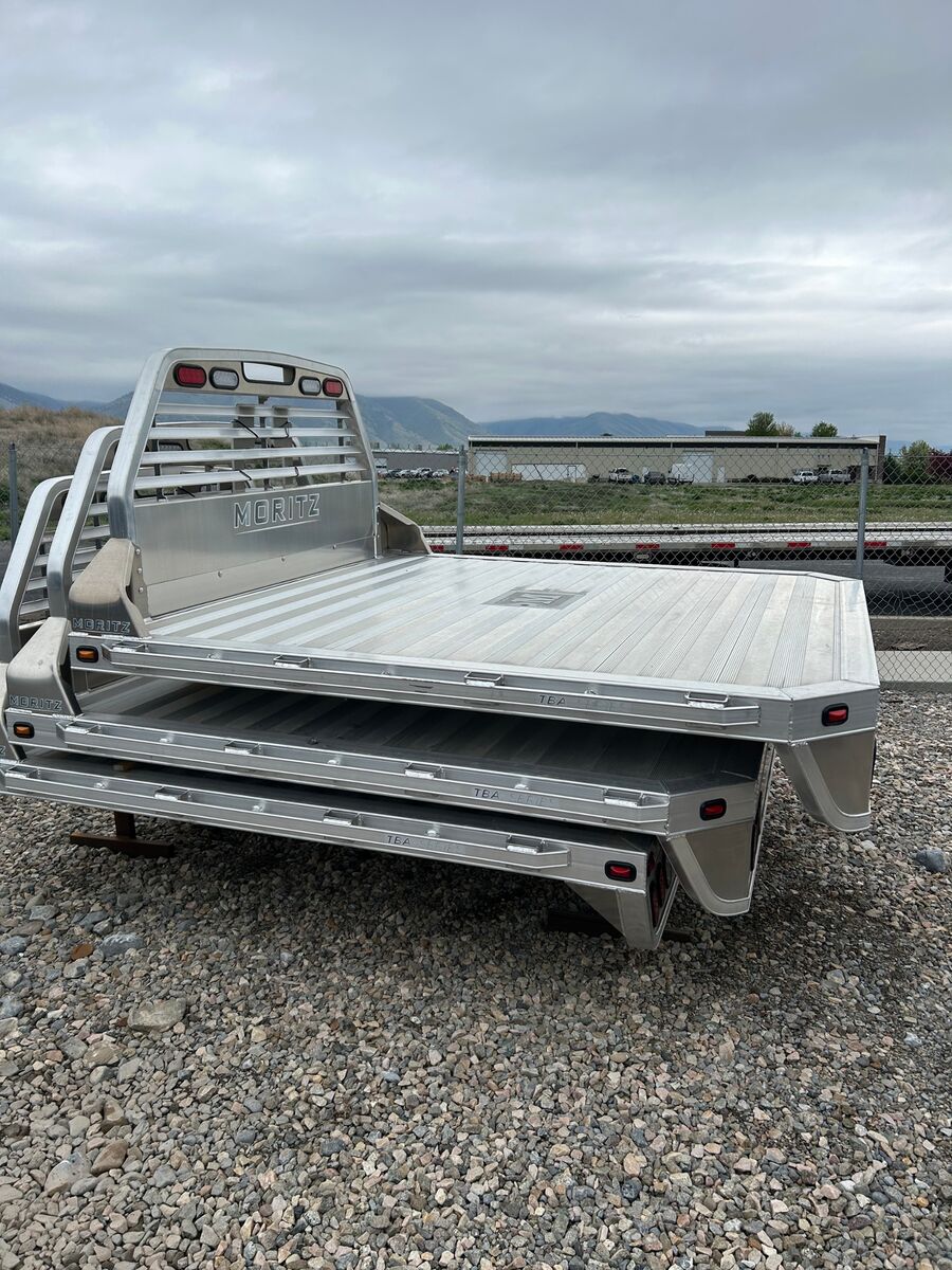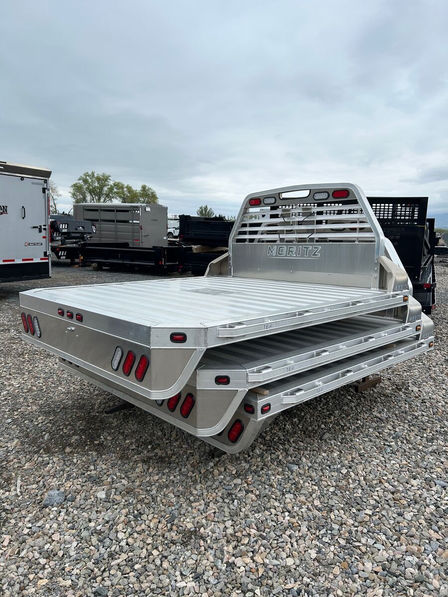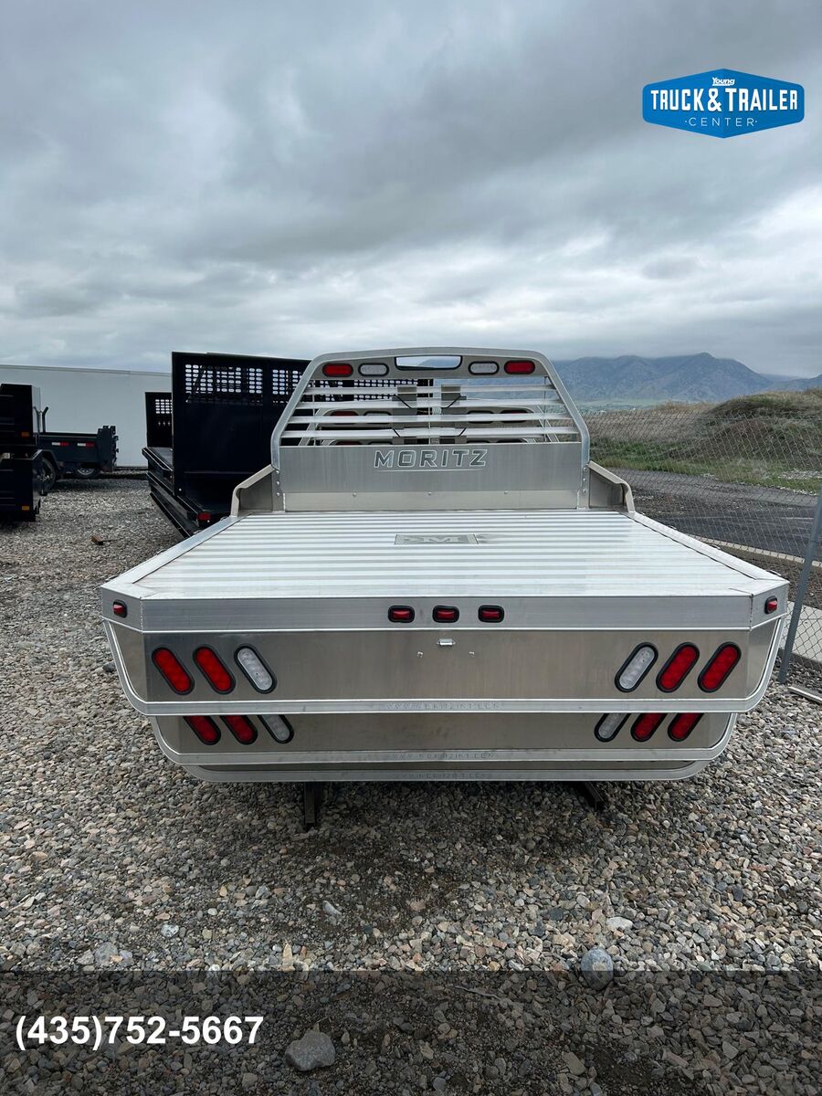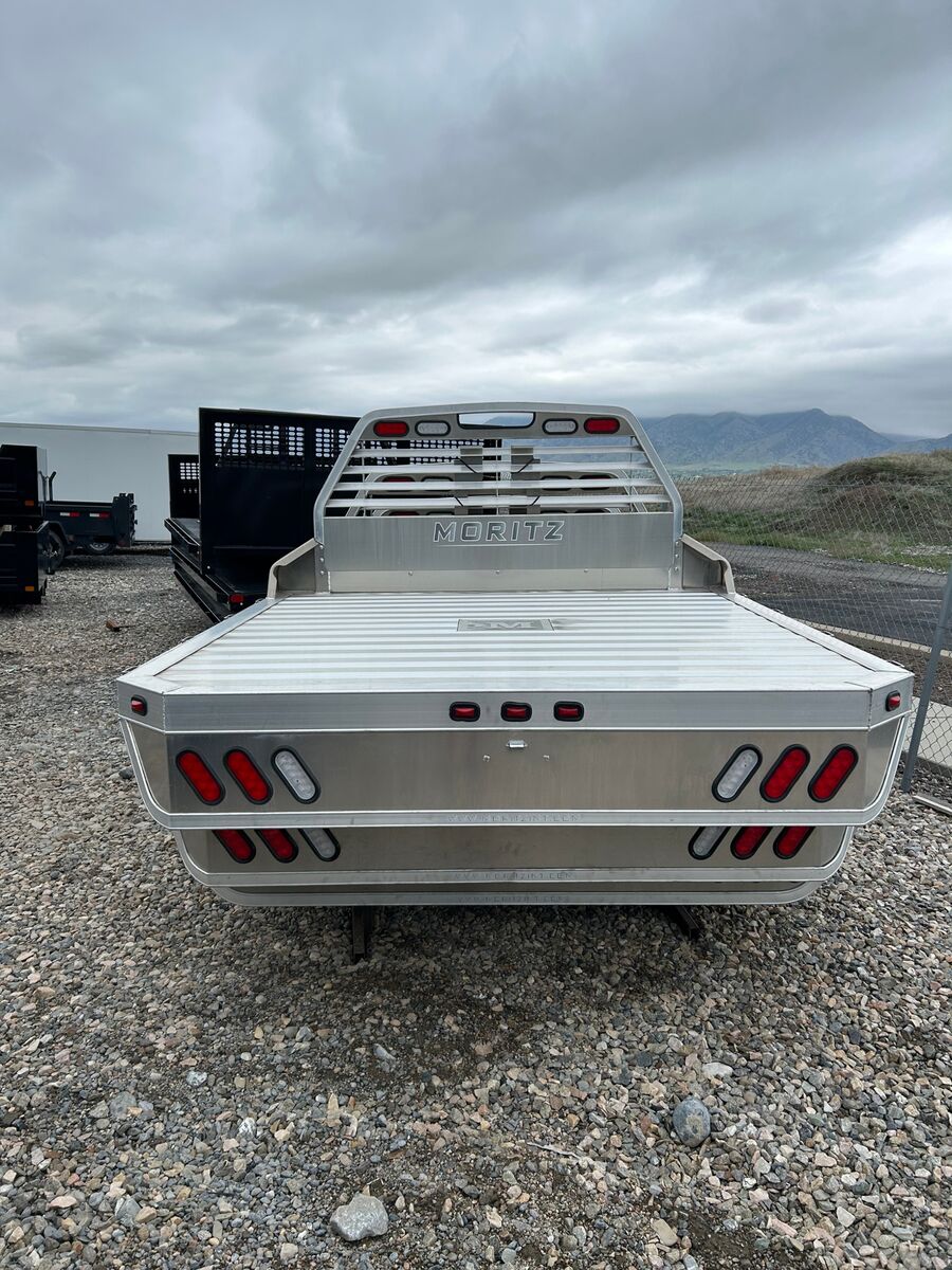 Moritz 8X8'6" Aluminum Flatbed Extruded Aluminum Floor Cast Aluminum Gooseneck Hitch Cover 5" Adjustable Main Rail (34" to 42") Gooseneck Hitch Plate Adjustable Headache Rack Mud Flap Brackets Stake Pockets & Rub Rail (sides and rear) Pipe Re-Enforcements Between Stake Pockets LED Lights & Sealed Wire Harness 2 Year Limited Warranty (see warranty for details)