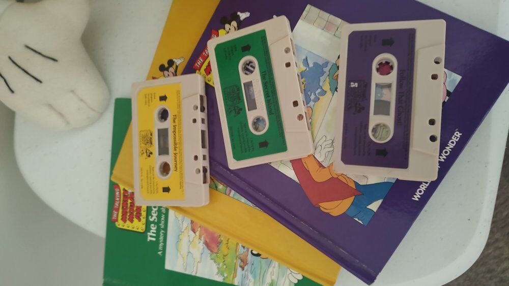 Venmo1986 Disney World of Wonder Wow Talking Mickey Mouse. Cassette player with 3 books and 3 Cassettes. Read along with Mickey Mouse as his mouth and nose moves to the story. 1.The impossible journey Goofy,2 Follow that ghost,3. The secret island. Excellent condition. $70.00 Cash or Venmo 385 250 4393