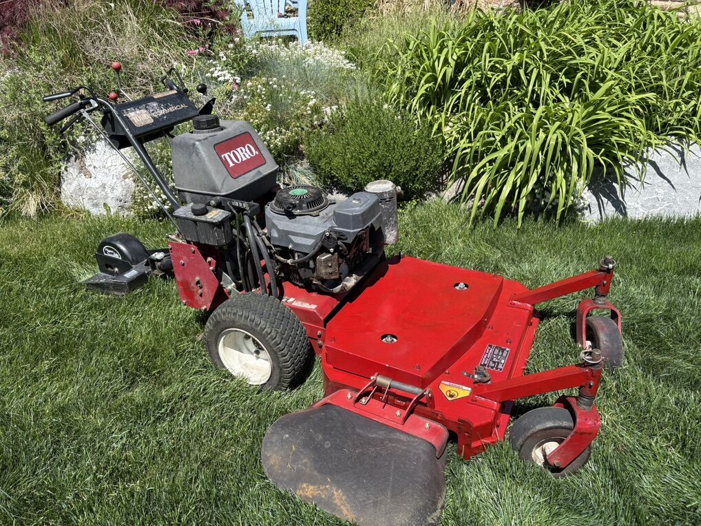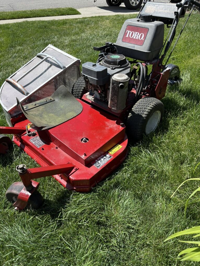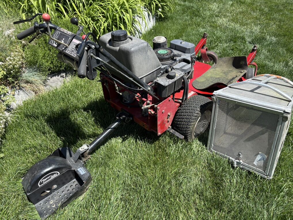 I have only owned this mower for a year. Very well maintained by the previous owner and myself. This mower comes with an aluminum bag catcher and a sulky to ride on. Starts right up with no problems. The mower is a beast and can move through anything. Even chops leafs to nothing. Manual in hand. An oil change about nine hours ago on the mower. $2,900 obo. Cash only