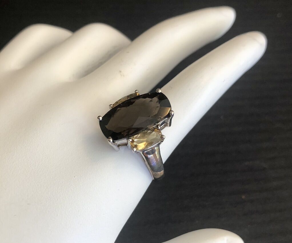Sterling silver ring with 5.3 Ct smoky quartz and .9 CTW champagne quartz accents. Size 7. New in box.
