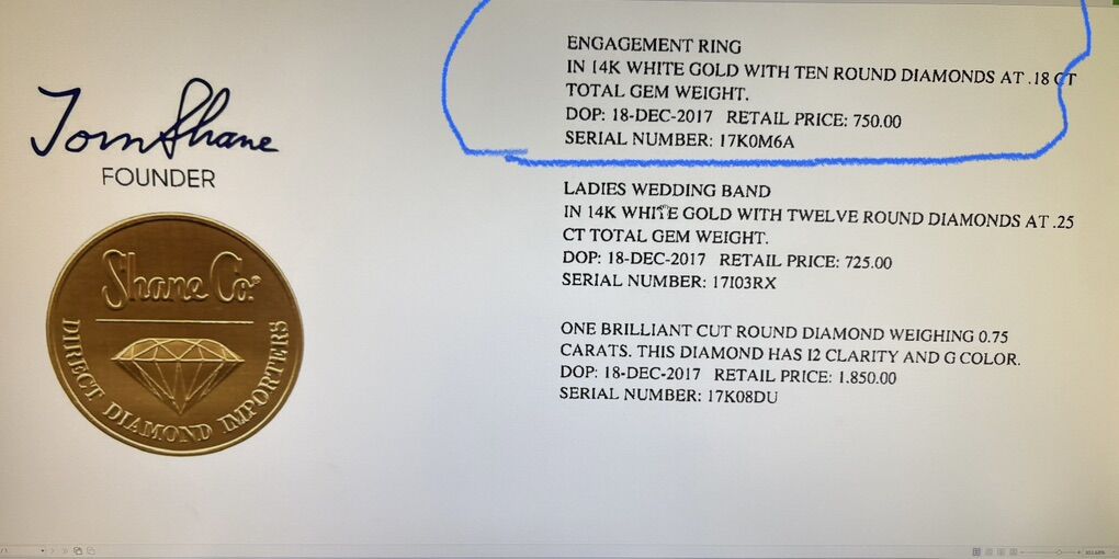 VenmoShaneCo Engagement Ring, with corresponding appraisal for sale. 14K White Gold With Ten Round Diamonds at .18 CT total gem weight.