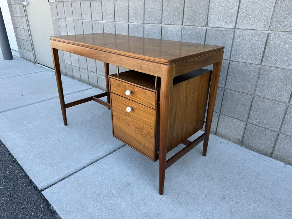 VenmoUp for your consideration is a beautiful matching Drexel Declaration desk and chair, designed by Kipp Stewart.